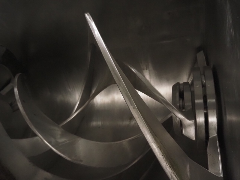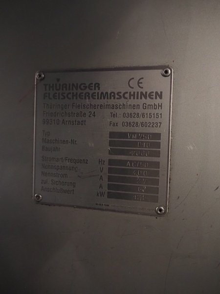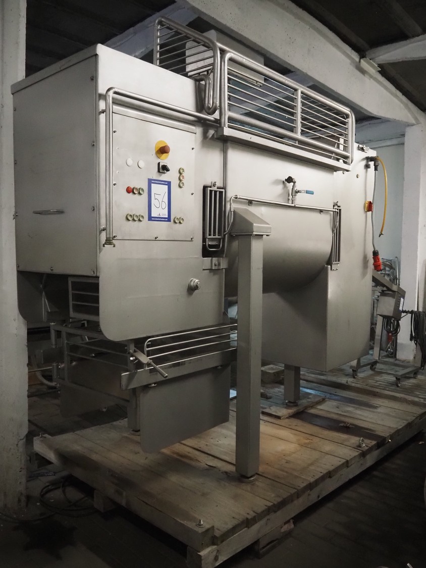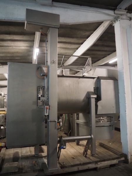 Thuringer Fleischereimaschinen GmbH spiral mixer with lifter for 200 liter meat bins, type: VM750, number: 010, year of construction: 2000, 400 V. 50 Hz, 27/63 A, 12.5 kW, volume: 750 liter, dimensions: 2850 mm x 1650 mm x 3150 mm.