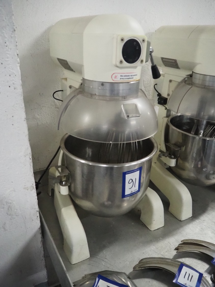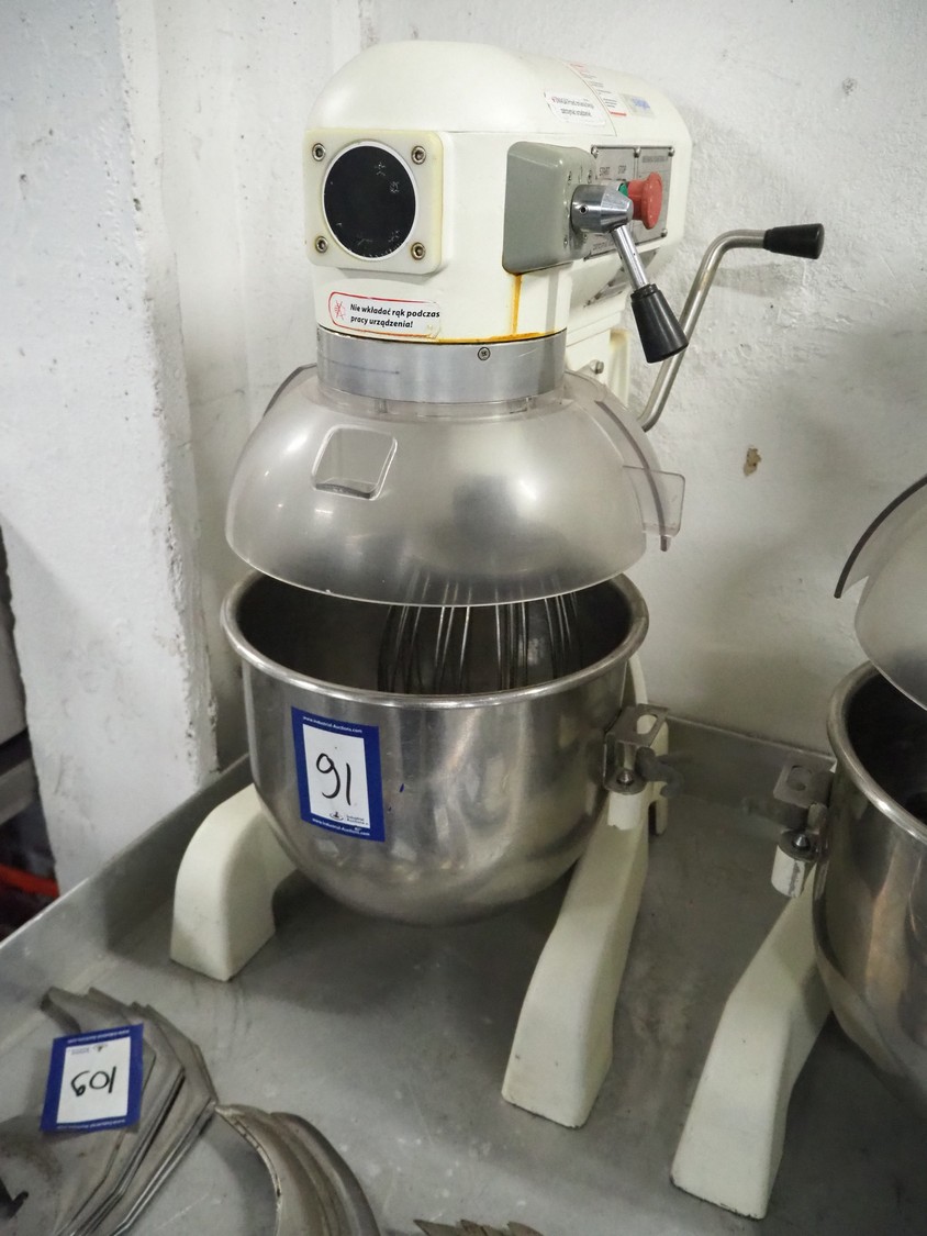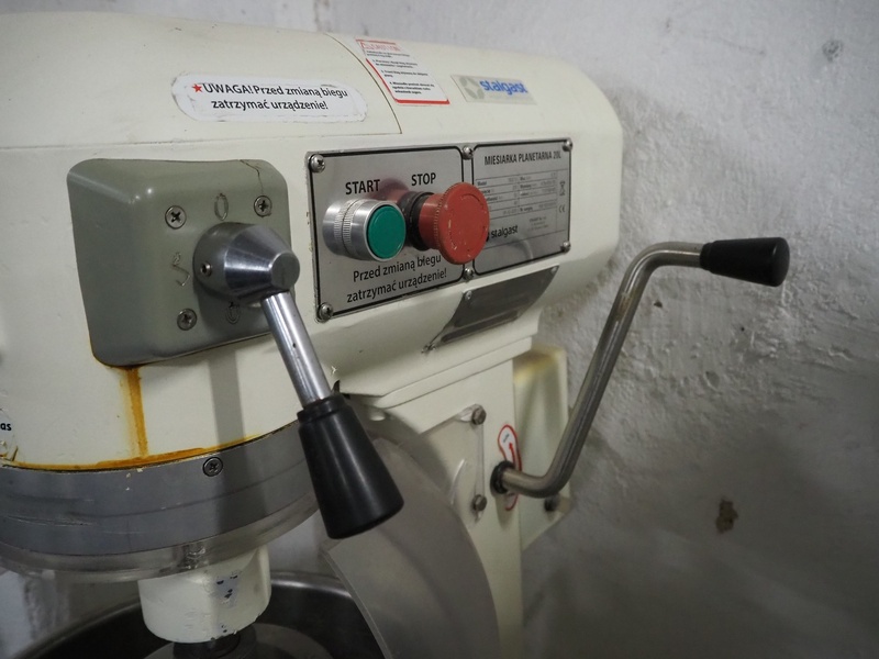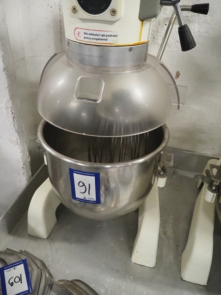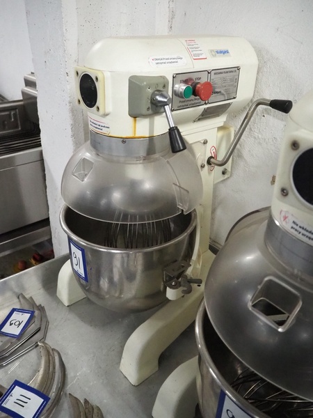 Stalgast SP. Z.o.o. table model mixer, model: 783210, serial number: 78321020120059, year of construction: 18-12-2020, 230 V, 50 Hz, 0.75 kW, 49 kg, volume: 20 liter, dimensions: 450 mm x 550 mm x 780 mm. Including whisk, paddle and spiral.