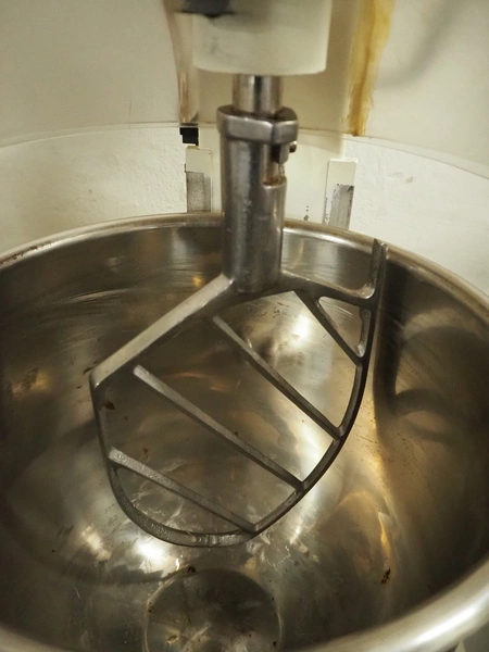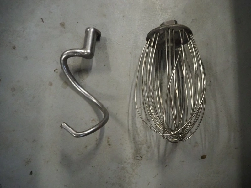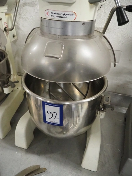 Stalgast SP. Z.o.o. table model mixer, model: 783210, serial number: 78321020120062, 230 V, 50 Hz, 0.75 kW, 49 kg, volume: 20 liter, dimensions: 450 mm x 550 mm x 780 mm. Including whisk, paddle and spiral.