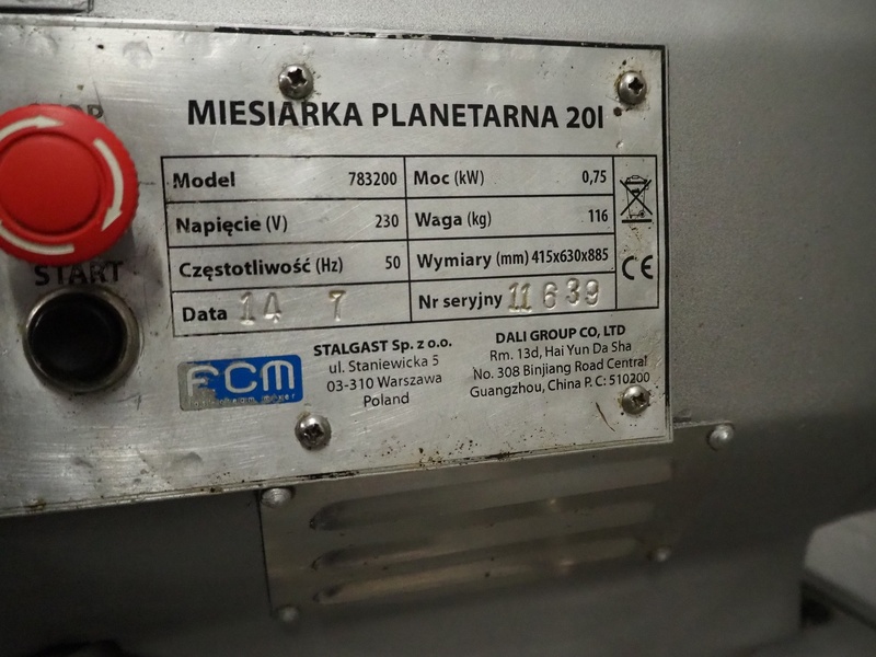 Stalgast SP. Z.o.o. table model mixer, model: 783200, number: 11639, year of construction: 07-2014, 230 V, 50 Hz, 0.75 kW, 116 kg, volume: 20 liter, dimensions: 400 mm x 550 mm x 750 mm. Including paddle and spiral.