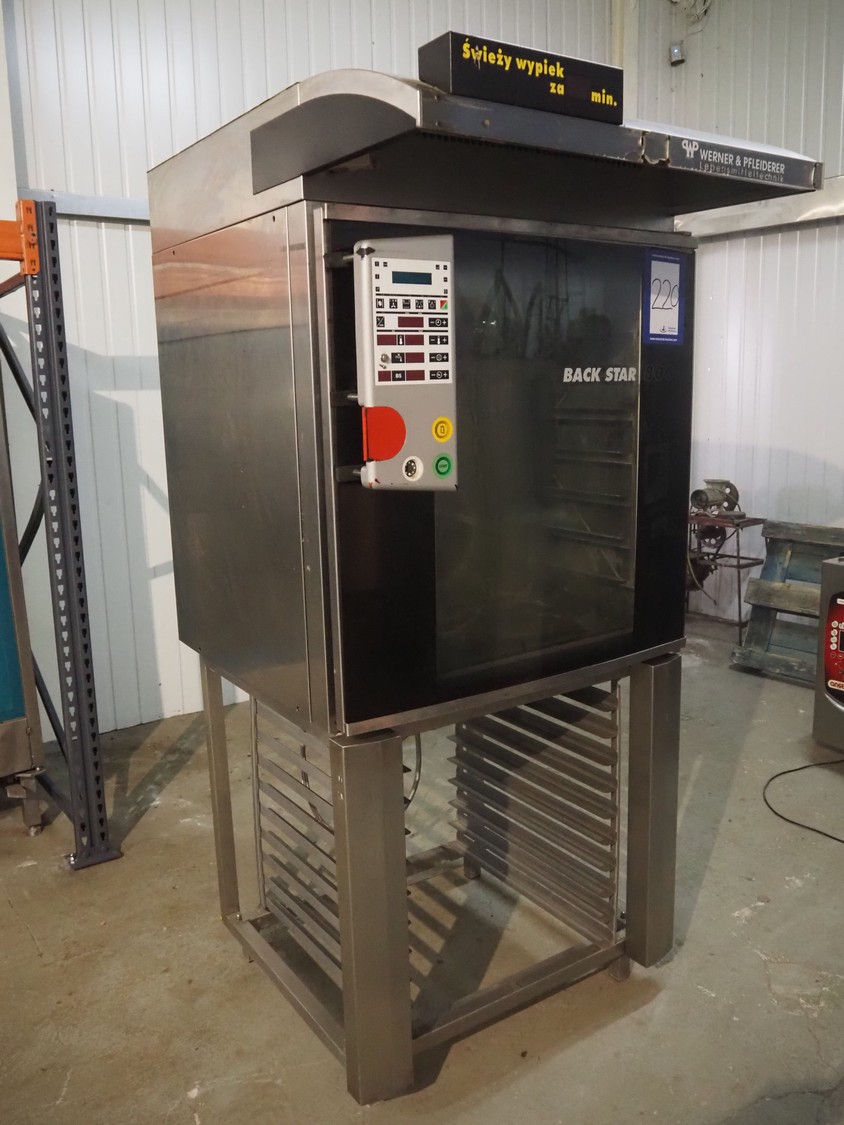 Werner & Pfleiderer combi steamer, type: Backstar 800 WP (A), number: 77902, year of construction: 2000-11, 400 V, 50 Hz, 18.4 A, 8 floors, floor dimensions: 350 mm x 610 mm, total dimensions: 1380 mm x 930 mm x 2040 mm. Lot located in Skierniewice (PL), viewing and pick up in consultation with Industrial Auctions B.V.