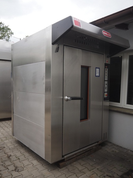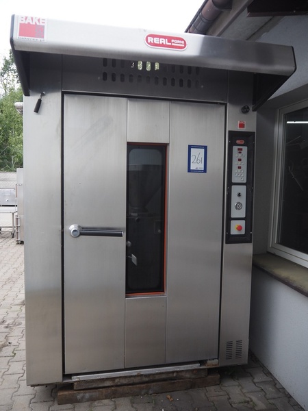 Bakares Sp. z o.o. rotisserie oven for 1 trolley, model: ROTOREAL SP, serial number: NP0200 0052, year of construction: 2019, 400 V, 50 Hz, 3.5 kW, weight: 2000 kg, inside dimensions: Ø 1200 mm x 1930 mm, total dimensions: 2450 mm x 1650 mm x 2280 mm. Lot located in Skierniewice (PL), viewing and pick up in consultation with Industrial Auctions B.V.