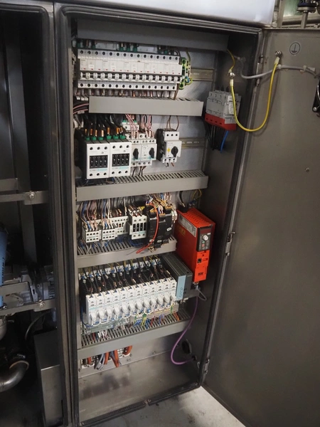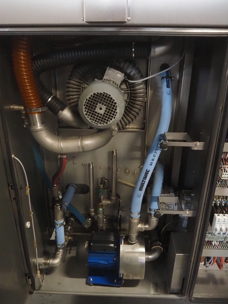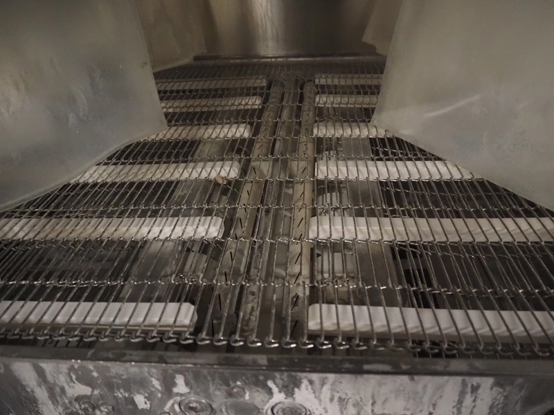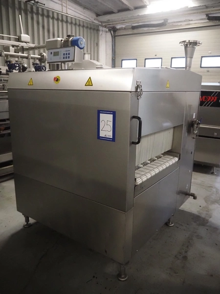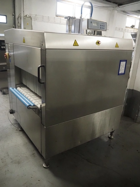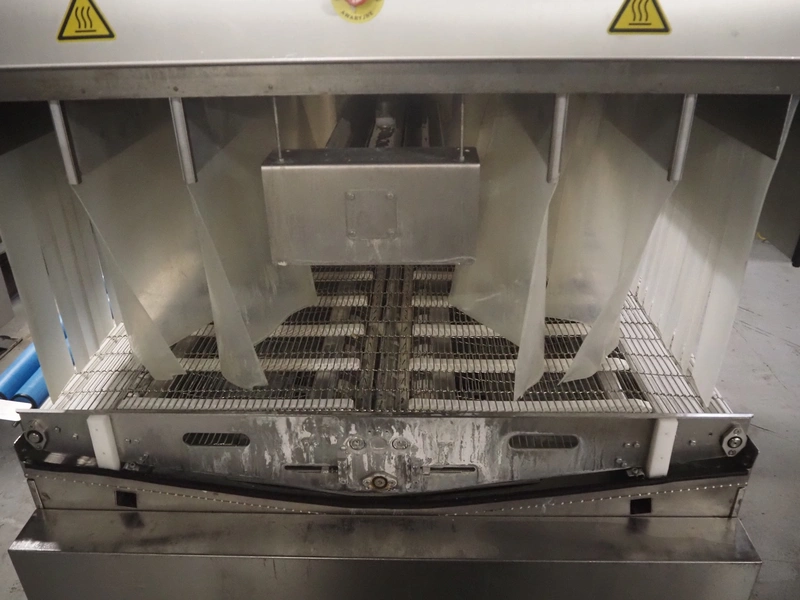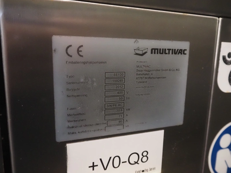 Multivac shrink tunnel, type: SE130, serial number: 159285, year of construction: 2012, 400 V, 3 Ph, 50 Hz, 71/80 A, 30.6 kW, s/s mesh belt, belt width: 800 mm, plastic rollers, roller width: 680 mm, clearance: 880 mm x 310 mm, total dimensions: 1470 mm x 1480 mm x 1880 mm.
