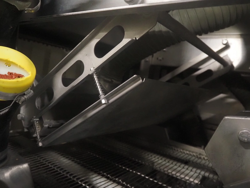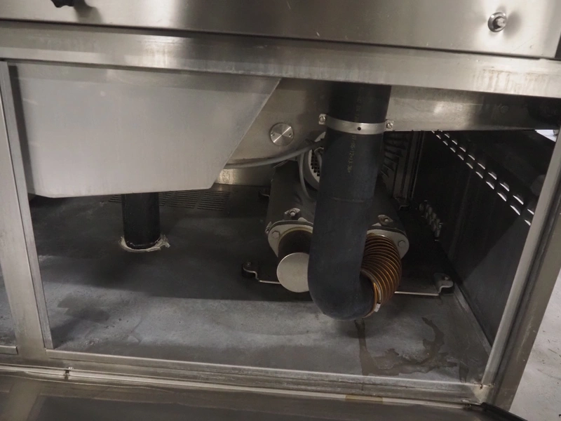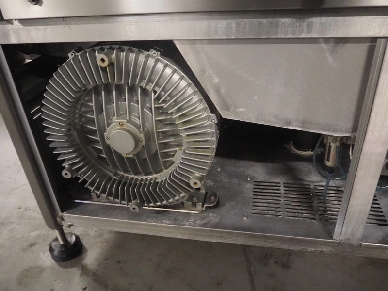 Cryovac drying tunnel, model: WR81, s/s mesh belt, belt width: 550 mm, clearance: 560 mm x 300 mm, (3x) blowers, working width blower: (3x) 550 mm, total dimensions: 2050 mm x 1170 mm x 1700 mm.