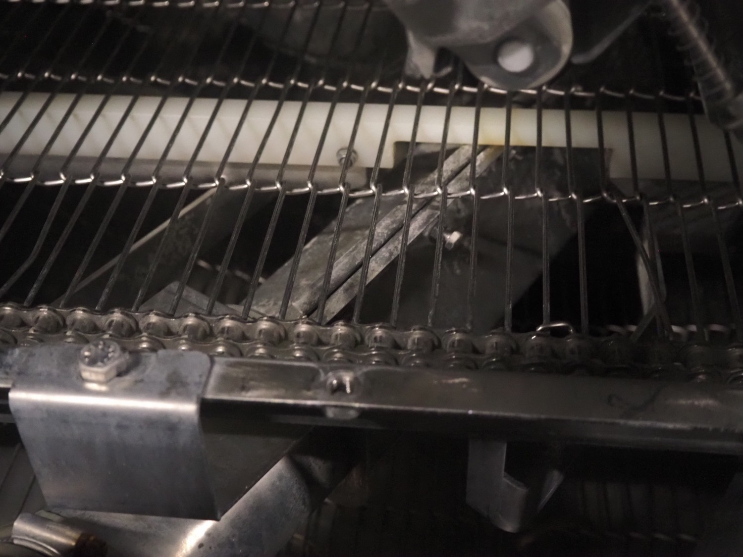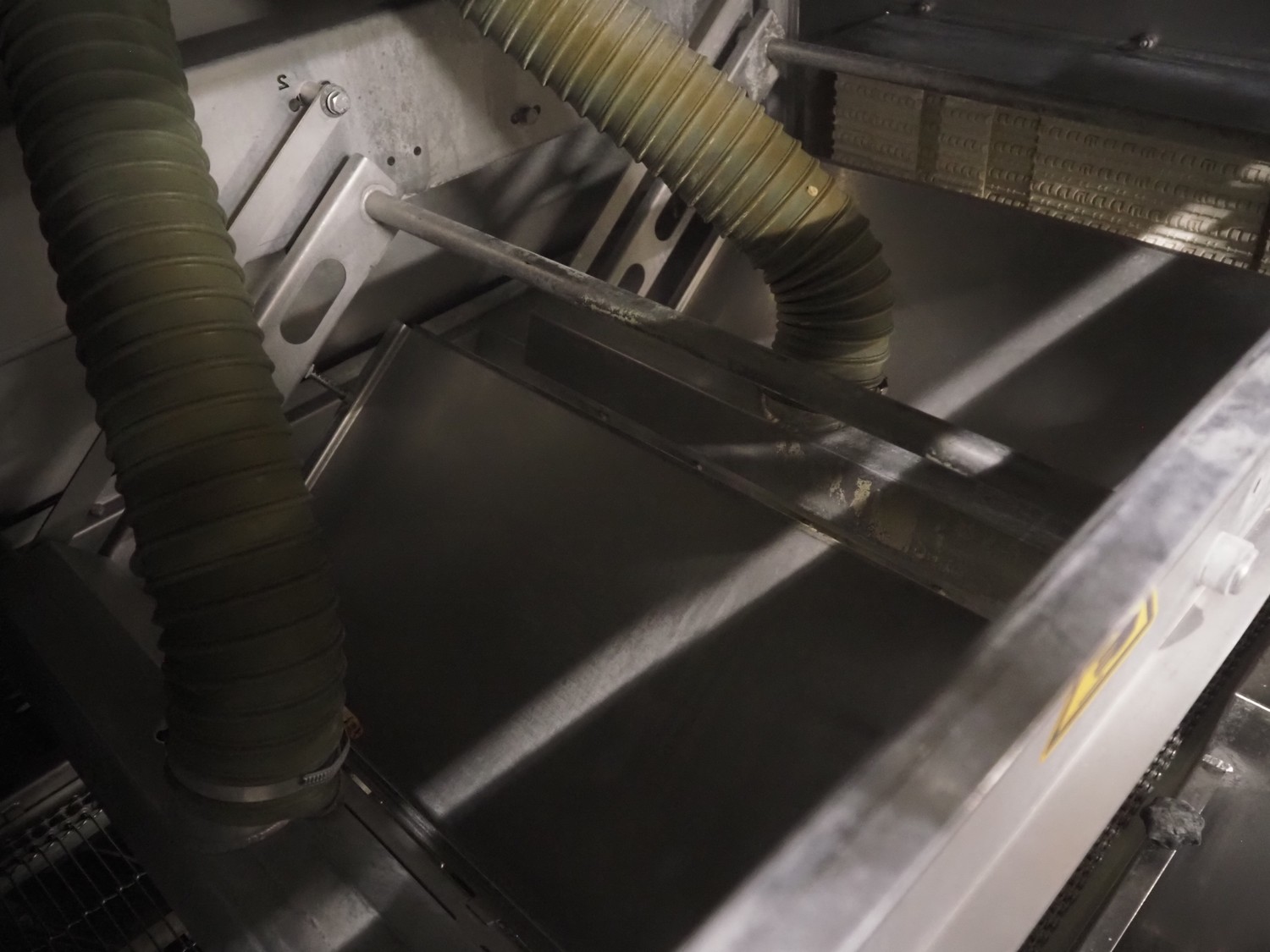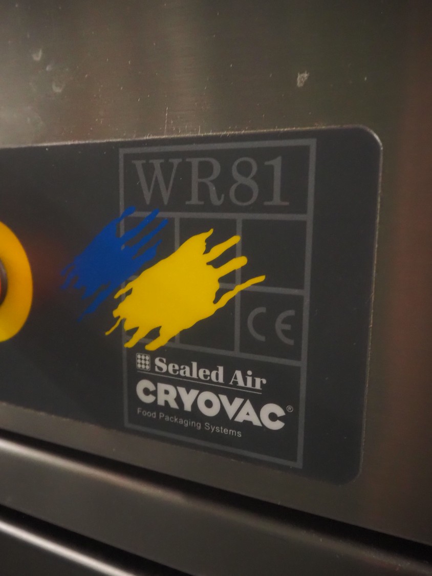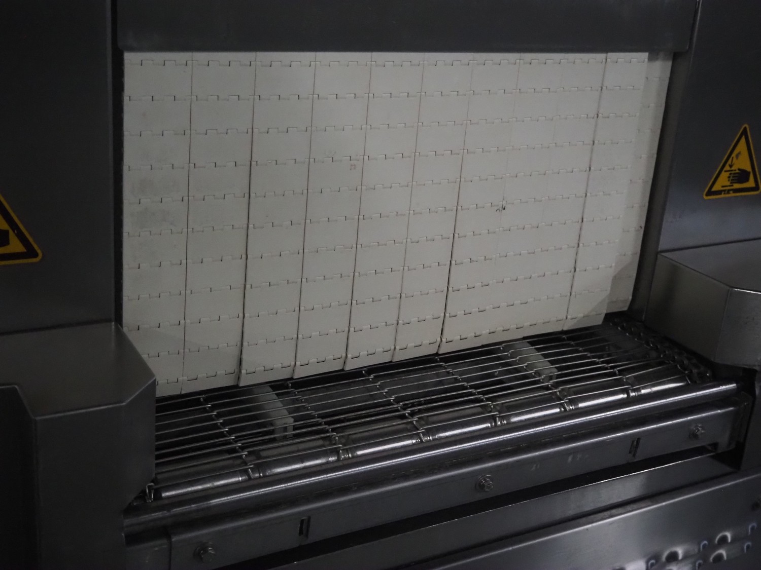 Cryovac drying tunnel, model: WR81, s/s mesh belt, belt width: 550 mm, clearance: 560 mm x 300 mm, (3x) blowers, working width blower: (3x) 550 mm, total dimensions: 2050 mm x 1170 mm x 1700 mm.