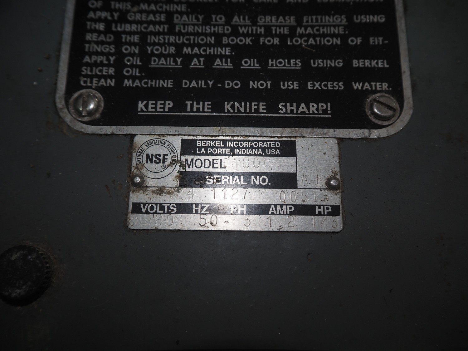 Berkel automatic slicer, model: 180GS, serial number: 9184 1000 04440, plastic belt, belt width: 300 mm, diameter knife: 350 mm, total dimensions: 2400 mm x 850 mm x 1340 mm. Lot located in Skierniewice (PL), viewing and pick up in consultation with Industrial Auctions B.V.