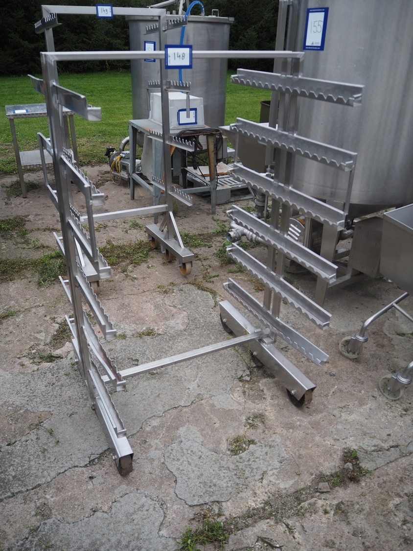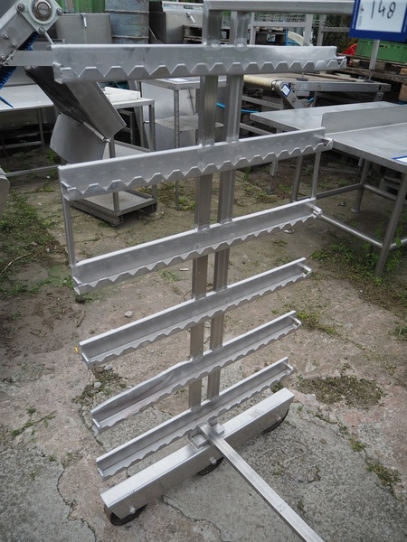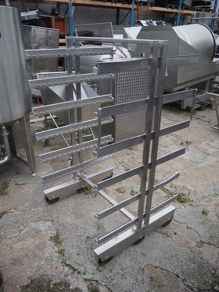 S/s smoke trolley for smoke sticks, 6 floors, floor width: 900 mm, total dimensions: 950 mm x 820 mm x 1490 mm.