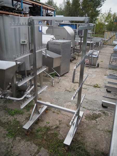 S/s smoke trolley for smoke sticks, 4 floors, floor width: 770 mm, total dimensions: 750 mm x 800 mm x 1700 mm.