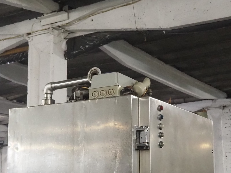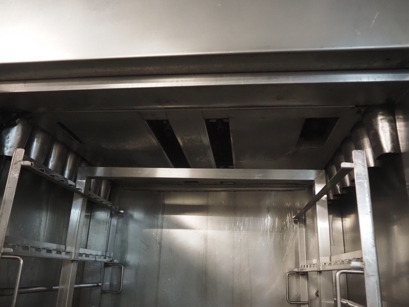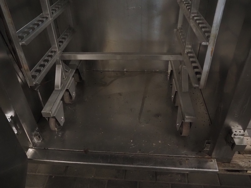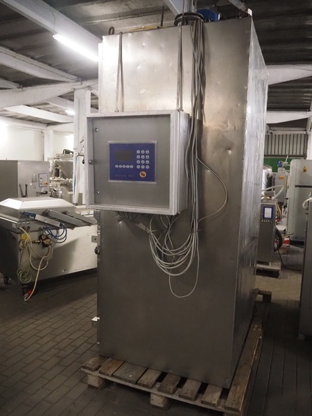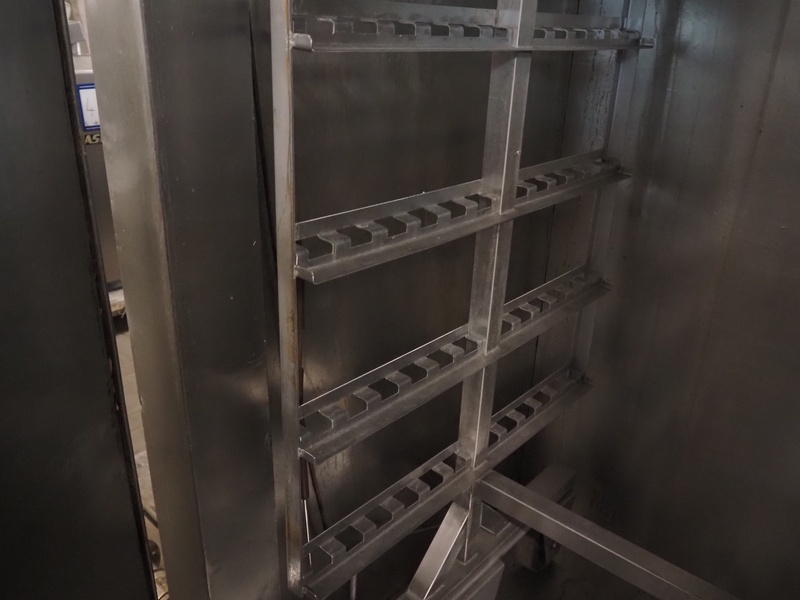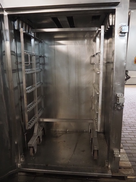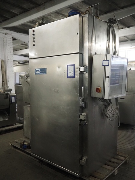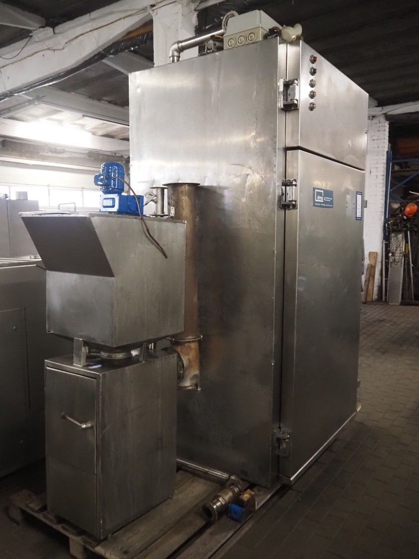 Atmos smoke chamber with smoke generator, inside dimensions: 950 mm x 1000 mm x 1740 mm, total dimensions: 1500 mm x 1360 mm x 2800 mm. Including smoke trolley.