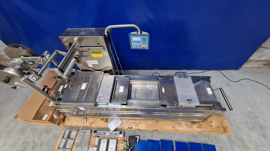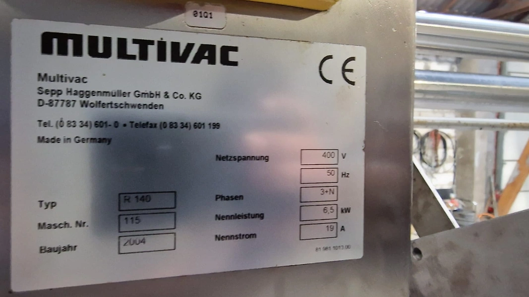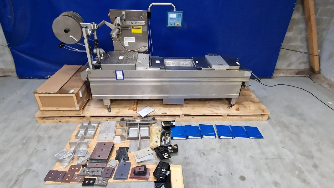 Multivac thermoformer, type: R140, serial number: 115, year of construction: 2004, 400 V, 3 Ph, 50 Hz, 19 A, 6.5 kW, film widht: 422 mm, total dimensions: 3500 mm x 1050 mm x 2120 mm. Including extra parts. Lot located in Sławogóra (PL), viewing and pick up in consultation with Industrial Auctions B.V.
