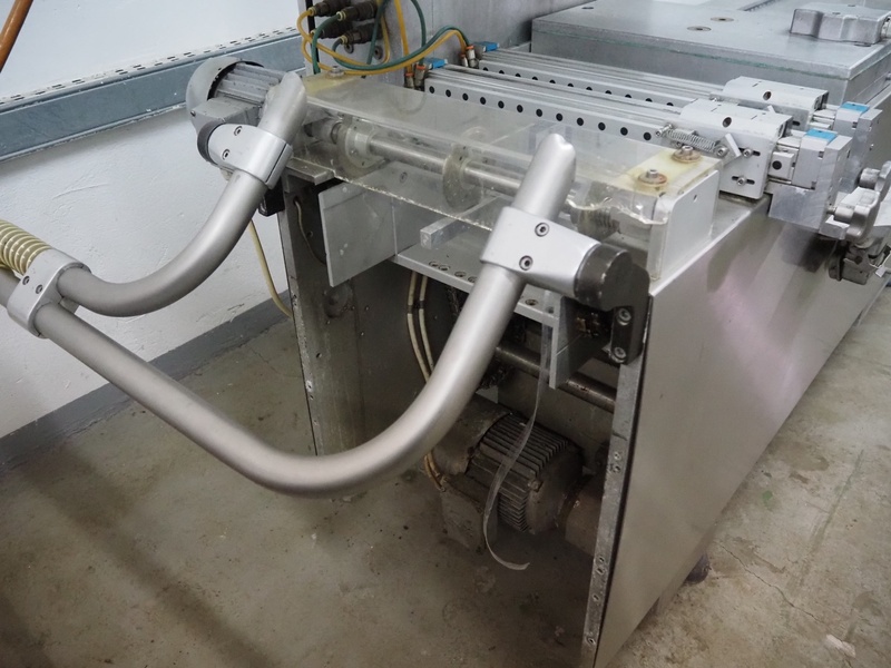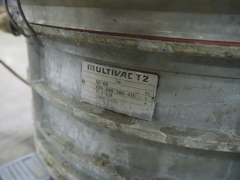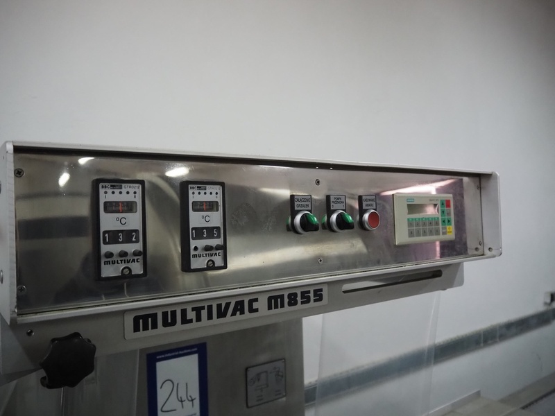 Multivac thermoformer, model: M855, Rietschle vacuum pump, type: VFS 201 (01), number: 1211452, year of construction: 1989, capacity: 200 m³ per hour, dimensions dye: (4x) 155 mm x 97 mm, index: 230 mm, total dimensions: 4750 mm x 750 mm x 1650 mm. Lot located in Skierniewice (PL), viewing and pick up in consultation with Industrial Auctions B.V.