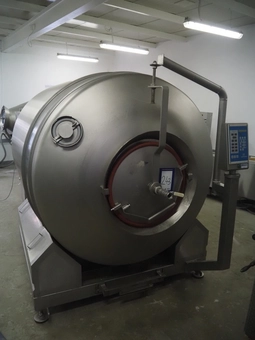 Spomasz vacuum tumbler, number: 1208, weight: 440 kg, inside dimensions: Ø 700 mm x 780 mm, total dimensions: 1450 mm x 900 mm x 17…0 bidsLot is closed -