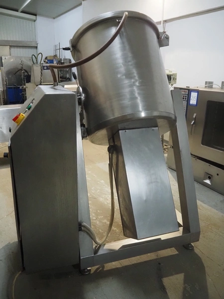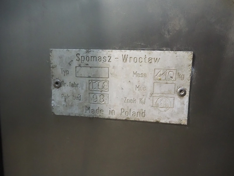 Spomasz vacuum tumbler, number: 1208, weight: 440 kg, inside dimensions: Ø 700 mm x 780 mm, total dimensions: 1450 mm x 900 mm x 1780 mm. Lot located in Skierniewice (PL), viewing and pick up in consultation with Industrial Auctions B.V.