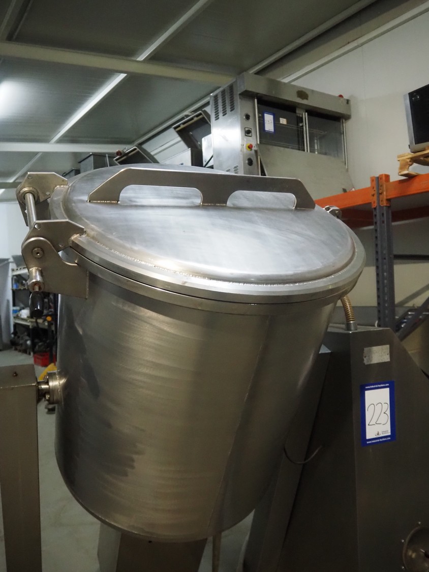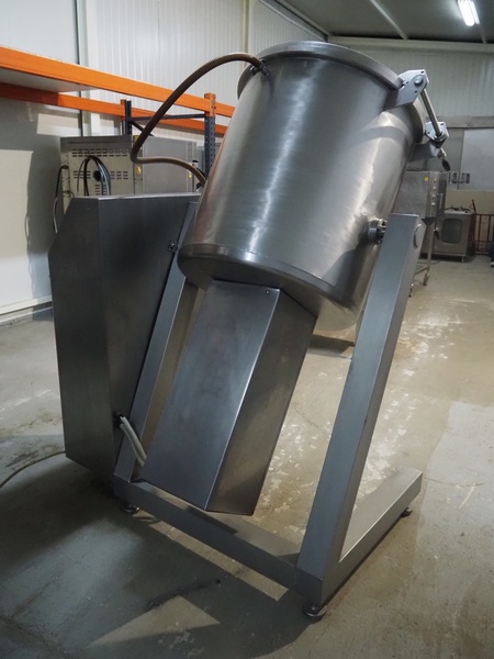 Spomasz vacuum tumbler, number: 1208, weight: 440 kg, inside dimensions: Ø 700 mm x 780 mm, total dimensions: 1450 mm x 900 mm x 1780 mm. Lot located in Skierniewice (PL), viewing and pick up in consultation with Industrial Auctions B.V.