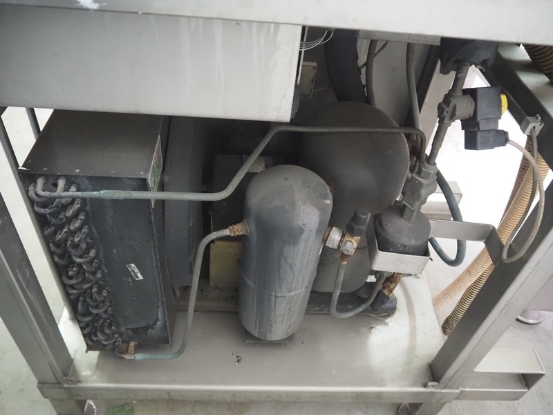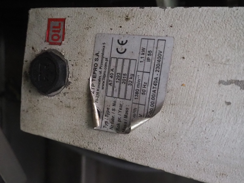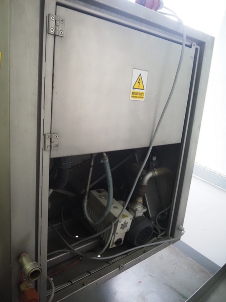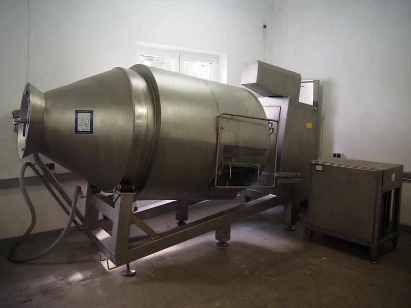 Karpowicz cooled vacuum tumbler, model: MK-2000C, serial number: 5252, volume tumbler: 2000 liter, ZTP TEPRO vacuum pump, type pump: AT 40 A, serial number: 1293, year of construction: 2015, capacity: 38 m³/h, dimensions tumbler: 3500 mm x 1650 mm x 2050 mm, dimensions cooling unit: 970 mm x 580 mm x 940 mm. Lot located in Skierniewice (PL), viewing and pick up in consultation with Industrial Auctions B.V.