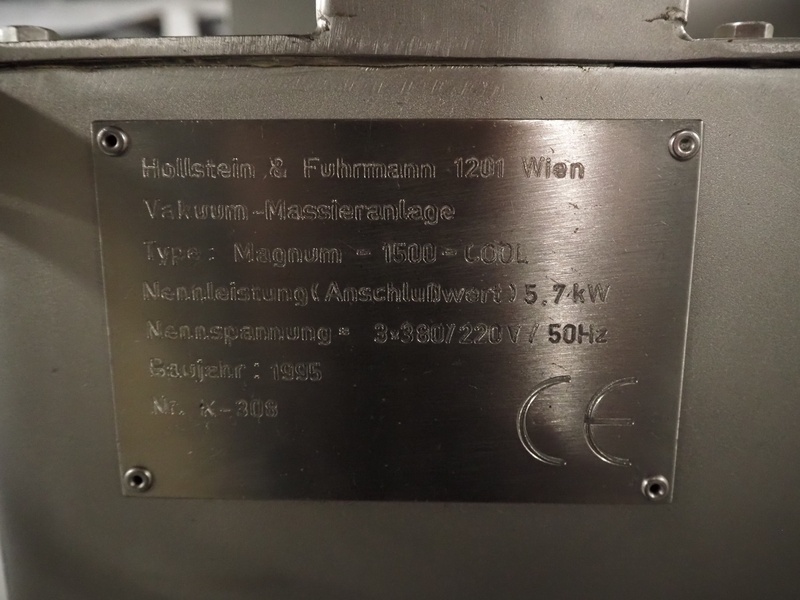 Inject star cooled vacuum tumbler, type: Magnum-1500-Cool, number: K-308, year of construction: 1995, 220/380 V, 3 Ph, 50 Hz, 5.7 kW, dimensions: 3350 mm x 1750 mm x 2070 mm.