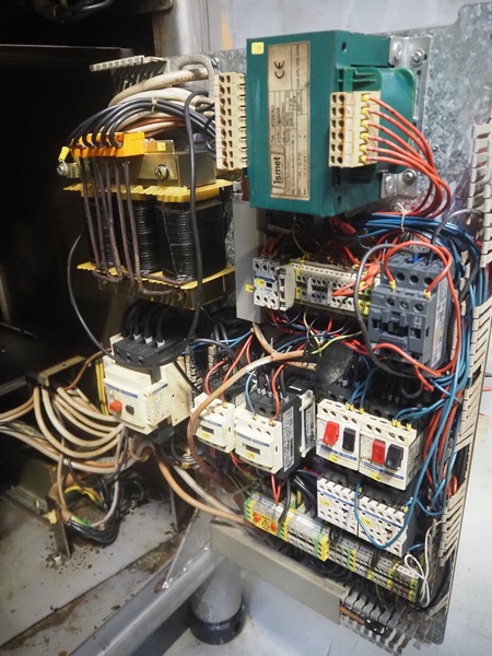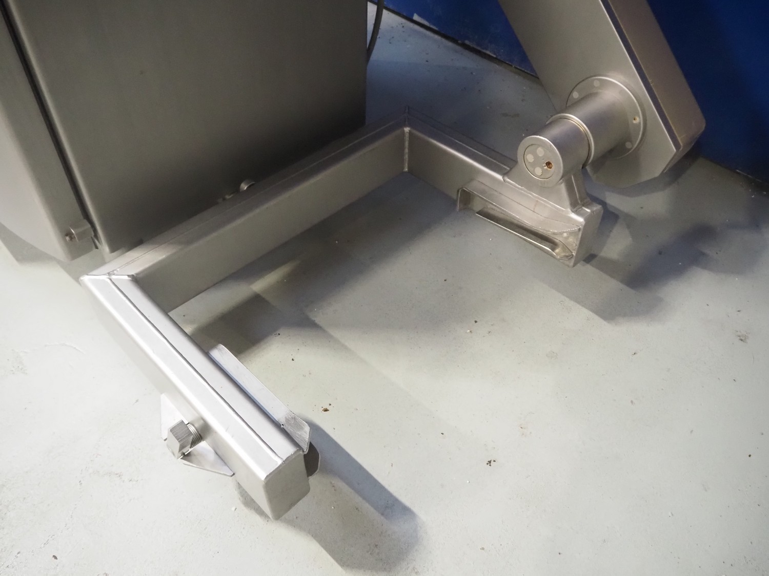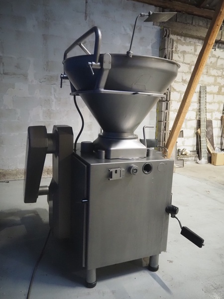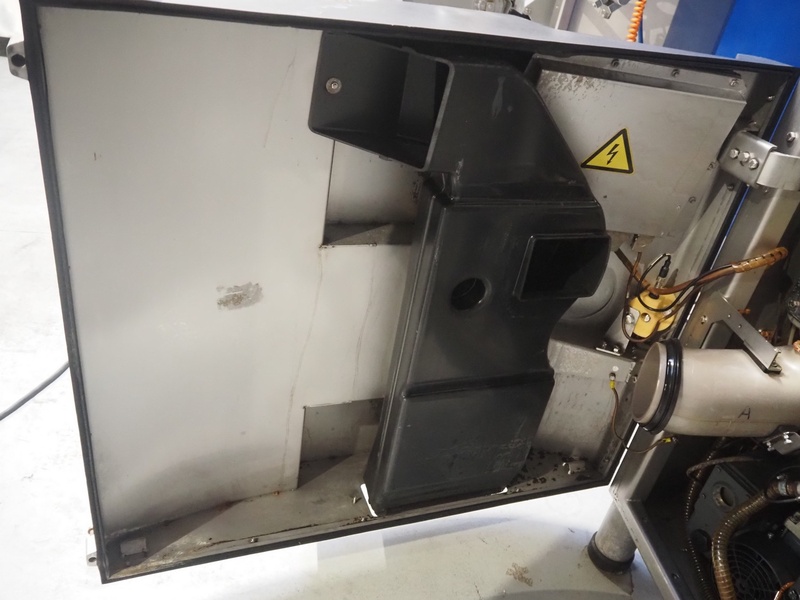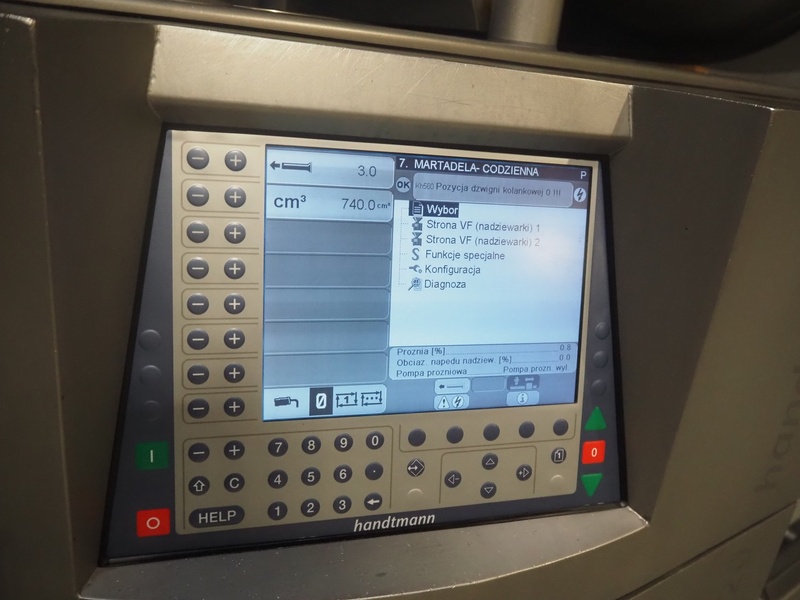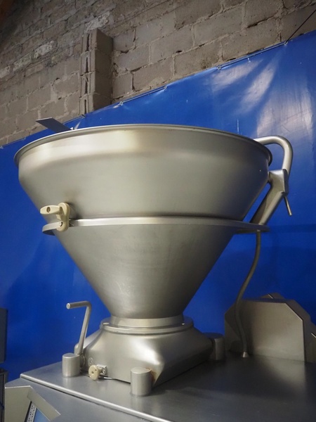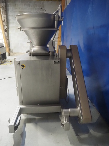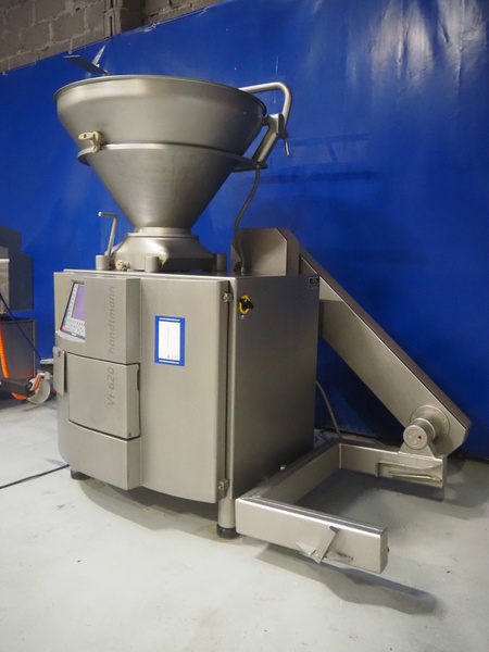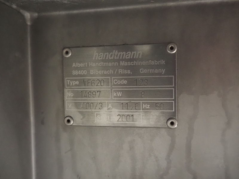 Handtmann vacuum filling machine with lifter for 200 liter meat bins, type: VF620, number: 14897, year of construction: 2001, 400 V, 3 Ph, 50 Hz, 11.6 A, 8 kW, Busch vacuum pump, dimensions: 2100 mm x 1360 mm x 2230 mm. Lot located in Sławogóra (PL), viewing and pick up in consultation with Industrial Auctions B.V.