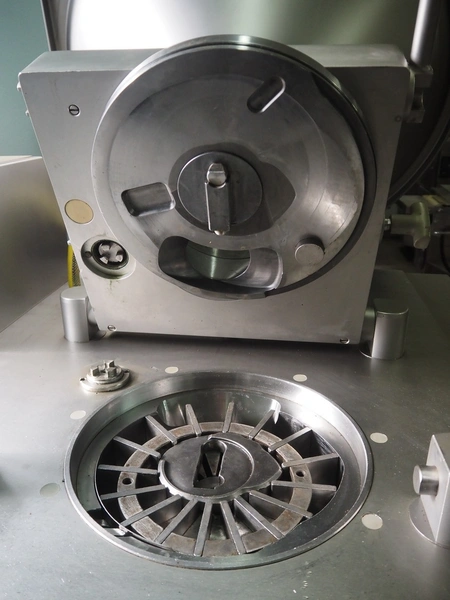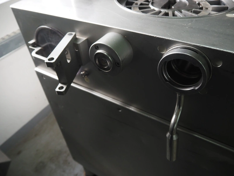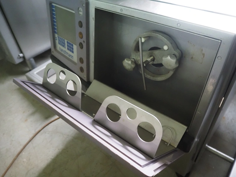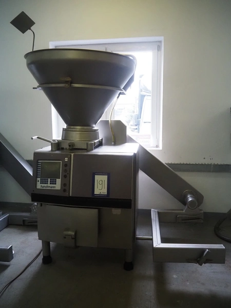 Handtmann vacuum filling machine with lifter for 200 liter meat bins, type: VF200 B, serial number: 4215, year of construction: 1998, 400 V, 50 Hz, 17 A, 6.5 kW, dimensions: 1750 mm x 1320 mm x 2290 mm. Lot located in Skierniewice (PL), viewing and pick up in consultation with Industrial Auctions B.V.
