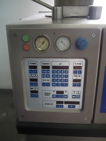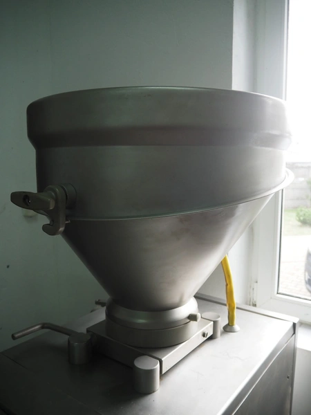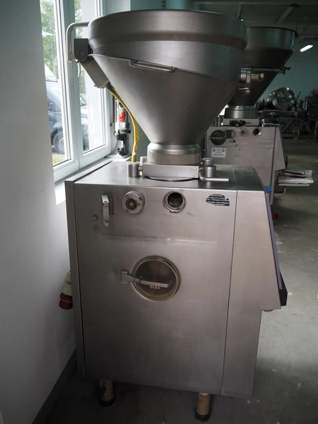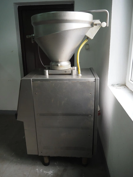 Handtmann vacuum filling machine, type: VF50, number: 4097, year of construction: 1997, 400 V, 3 Ph, 50 Hz, 11 A, 4 kW, dimensions: 850 mm x 580 mm x 1690 mm. Lot located in Skierniewice (PL), viewing and pick up in consultation with Industrial Auctions B.V.