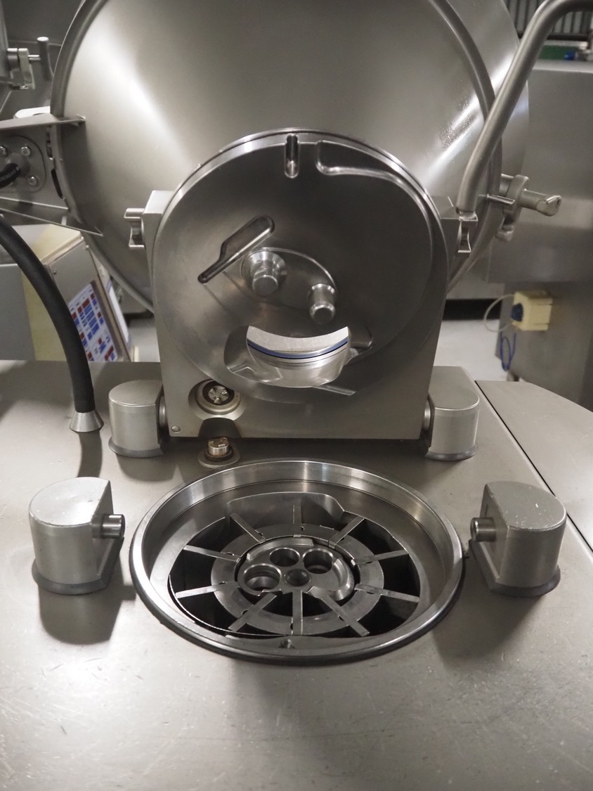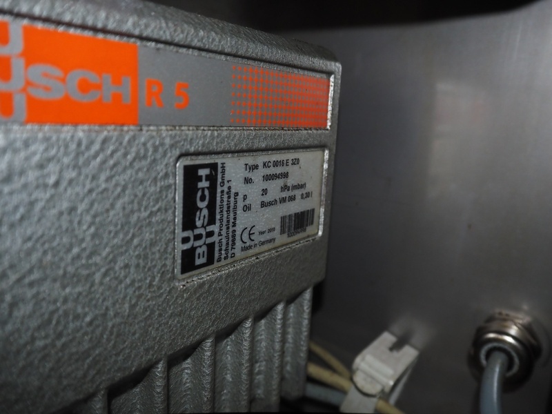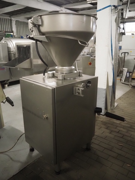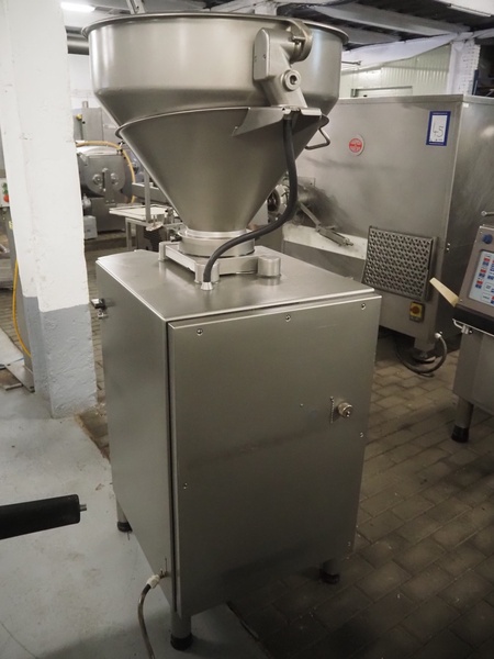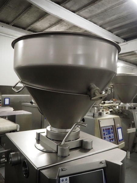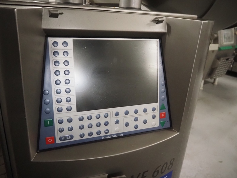 Handtmann vacuum filling machine, type: VF608, number: 25998, year of construction: 2009, 420 V, 3 Ph, 50/60 Hz, 4.1 A, 3.0 kW, Busch vacuum pump, type: KC 0016 E 3ZO, number: 100094998, year of construction: 2010, capacity: 16 m³ per hour, dimensions: 1050 mm x 880 mm x 1700 mm.