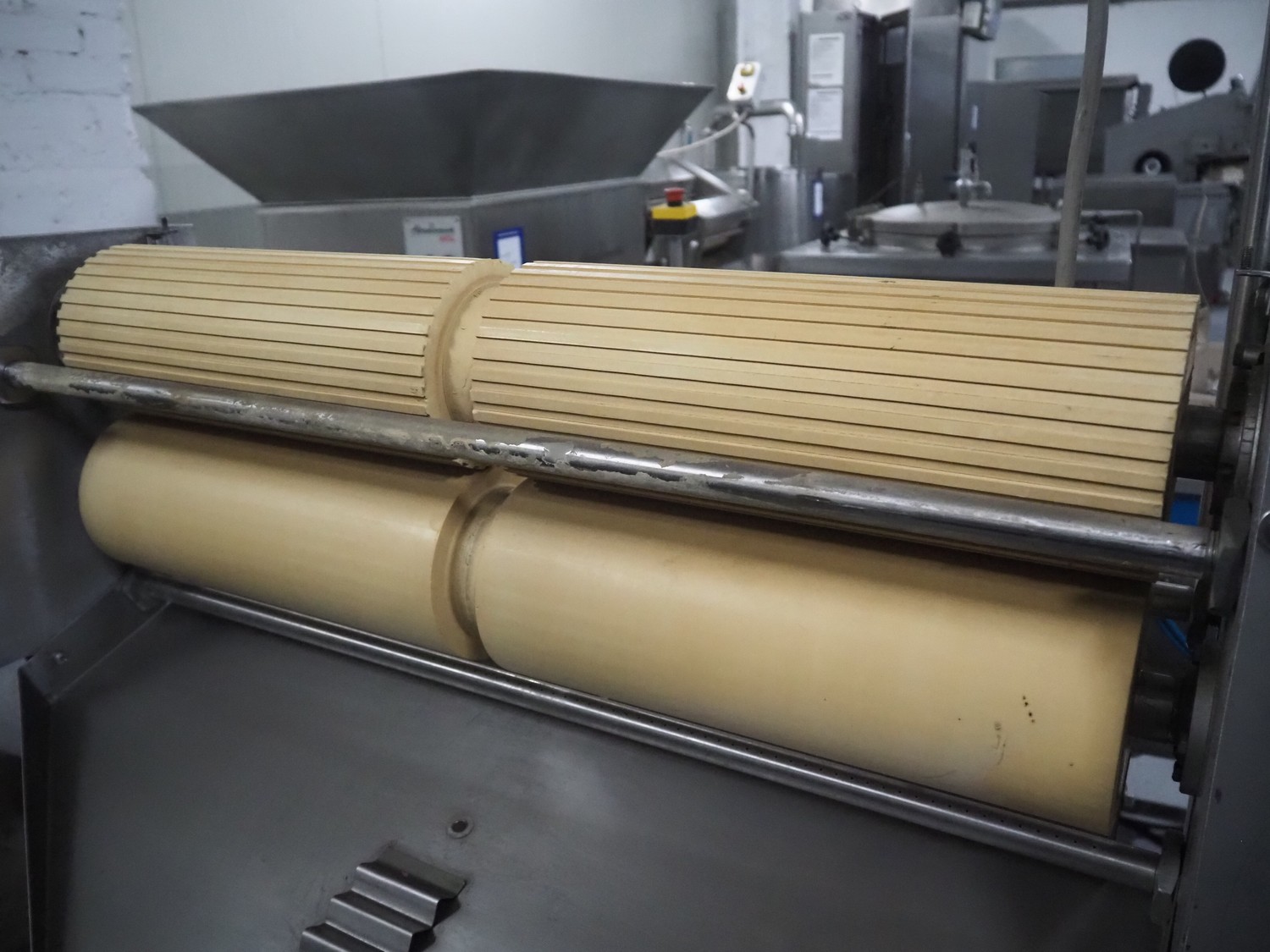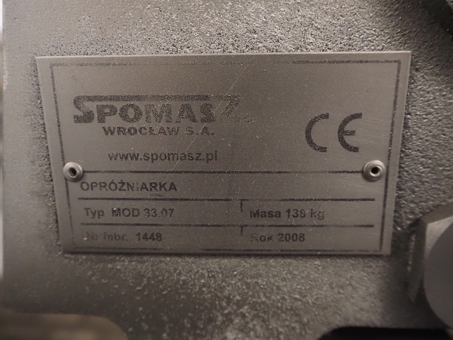 Spomasz intestine crusher, type: MOD 33.07, fabrication number: 1448, year of construction: 2008, 138 kg, plastic rollers, roller width: 800 mm, total dimensions: 1150 mm x 560 mm x 1600 mm.