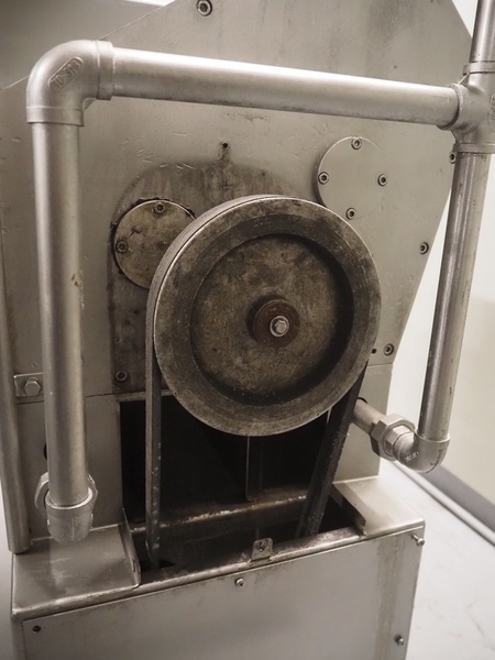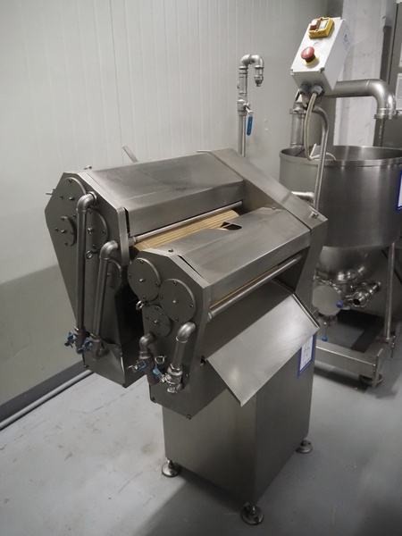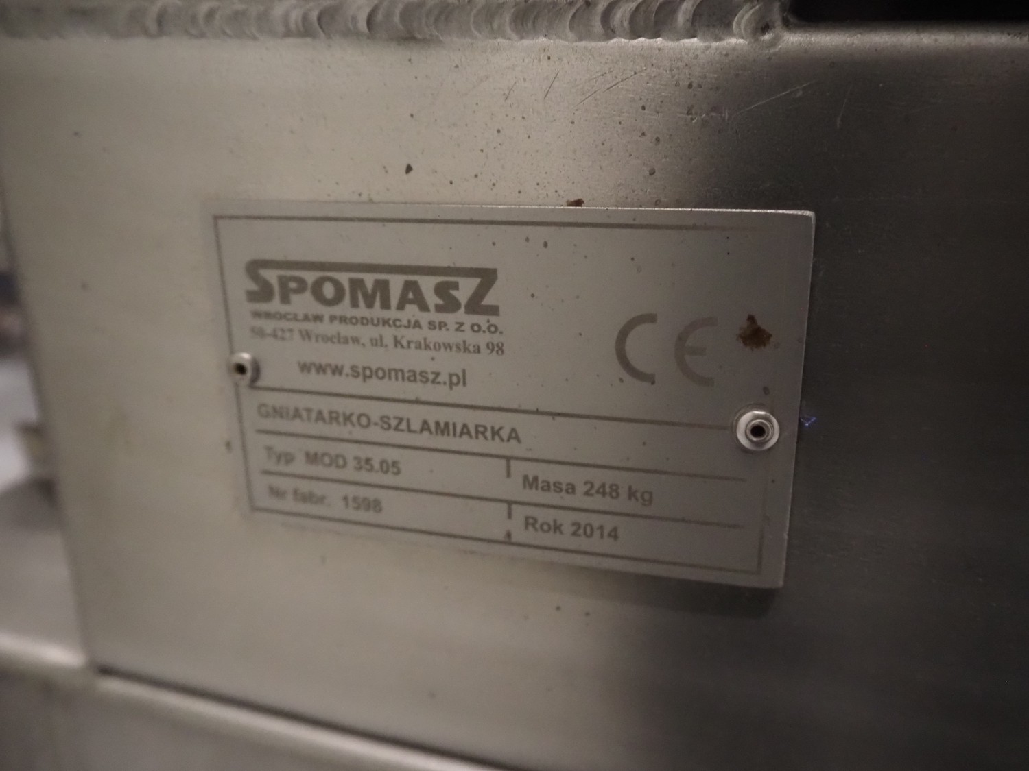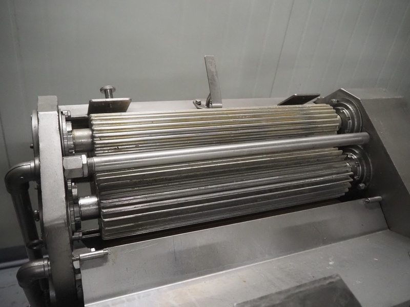 Spomasz intestine crusher, type: MOD 35.05, number: 1598, year of construction: 2014, machine weight: 248 kg, plastic rollers, roller width: 450 mm, total dimensions: 960 mm x 580 mm x 1620 mm.