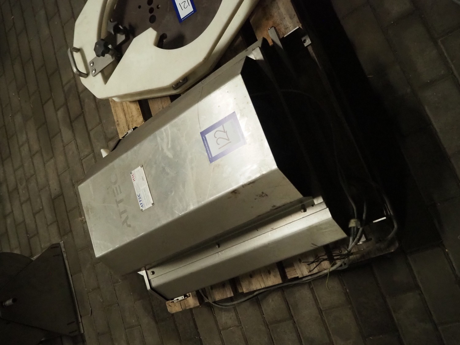 Attec / Itec part of circular knife, type: BTSL, order number: 16212-002, serial number: 100, year of construction: 2007, diameter knife: 340 mm, total dimensions: 610 mm x 300 mm x 850 mm.