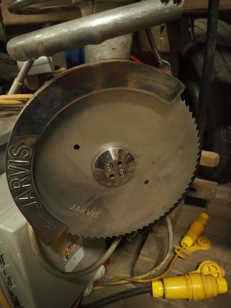 Jarvis circular saw, model: SEC280-4, serial number: 115645, 50 Hz, 115 V, 1700 W, 13 A, 2850 RPM, diameter saw: 280 mm, total dimensions: 800 mm x 240 mm x 300 mm.