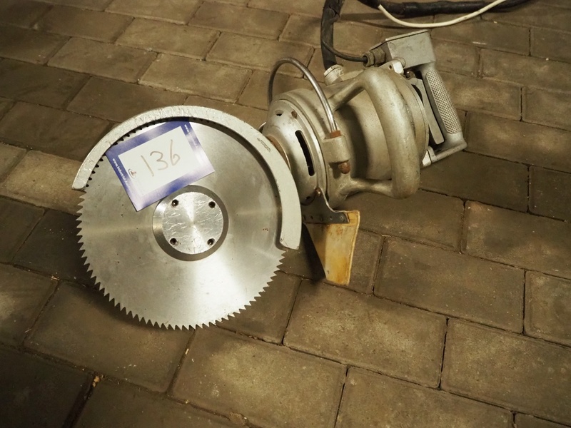 Bobrme komel circulair saw, number: 4407/89, 24 V, 3 Ph, 50 Hz, diameter saw: 250 mm, total dimensions: 600 mm x 260 mm x 300 mm.
