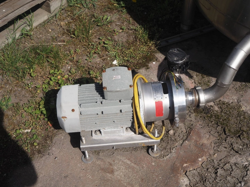 S/s tank with KPA pump, dimensions tank: Ø 1200 mm x 1550 mm, total dimensions: 1700 mm x 1200 mm x 2100 mm.