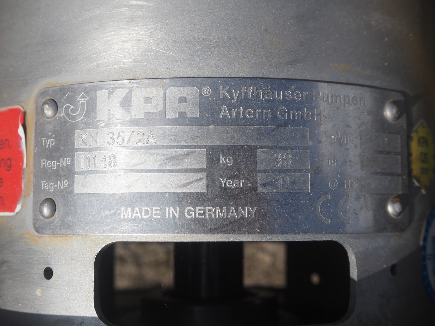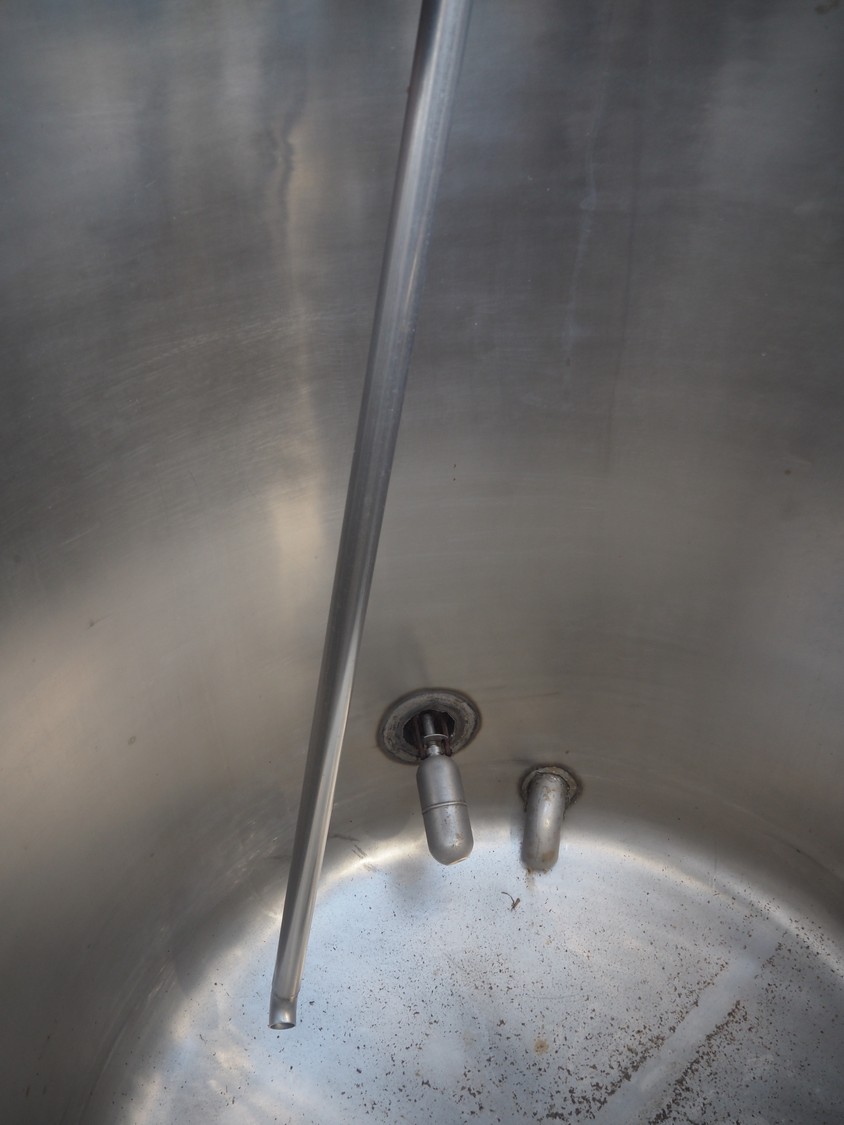 S/s tank with KPA pump, dimensions tank: Ø 1200 mm x 1550 mm, total dimensions: 1700 mm x 1200 mm x 2100 mm.