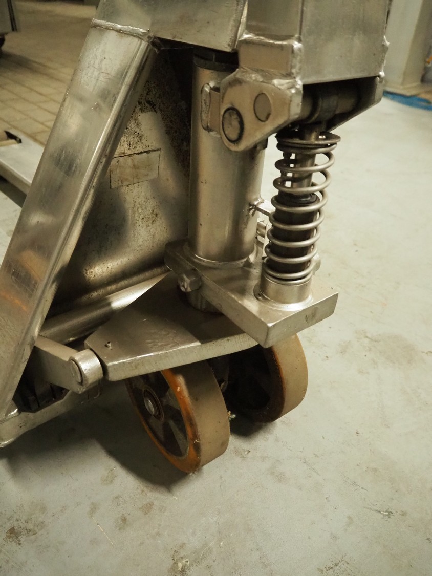 S/s pallet lifter, fork length: 1130 mm, total dimensions: 1520 mm x 520 mm x 1200 mm. Defect.