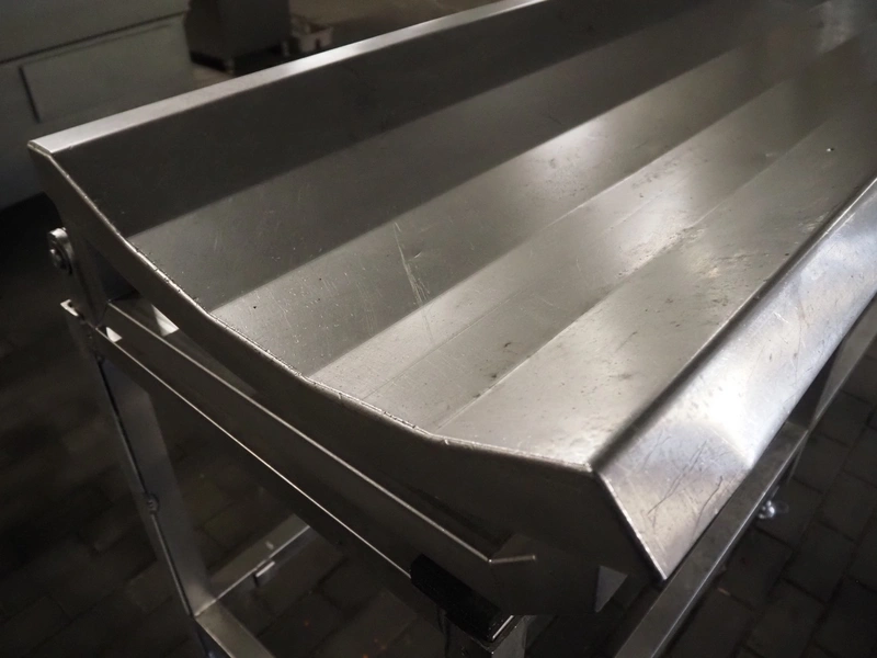 S/s tiltable gutter, gutter width: 500 mm, gutter length: 2000 mm, total dimensions: 2000 mm x 660 mm x 1080 mm.