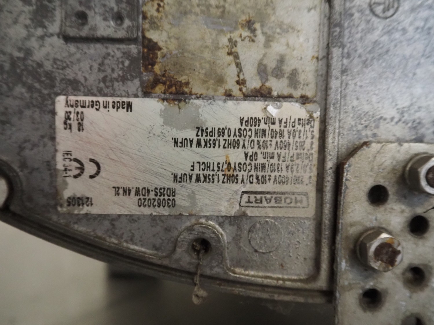 Hobart ventilator, type: RD25S-4DW.4N.2L, 220/380 V, 50 Hz, 5.0/2.9 A, 1.5 kW, 1300 RPM, dimensions: 380 mm x 470 mm x 380 mm.