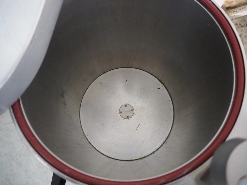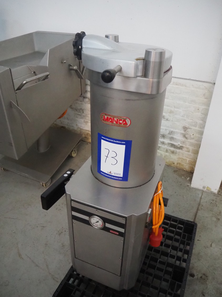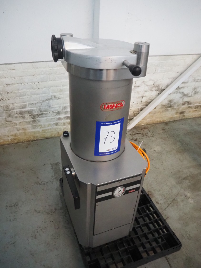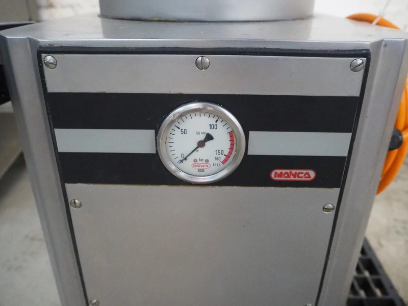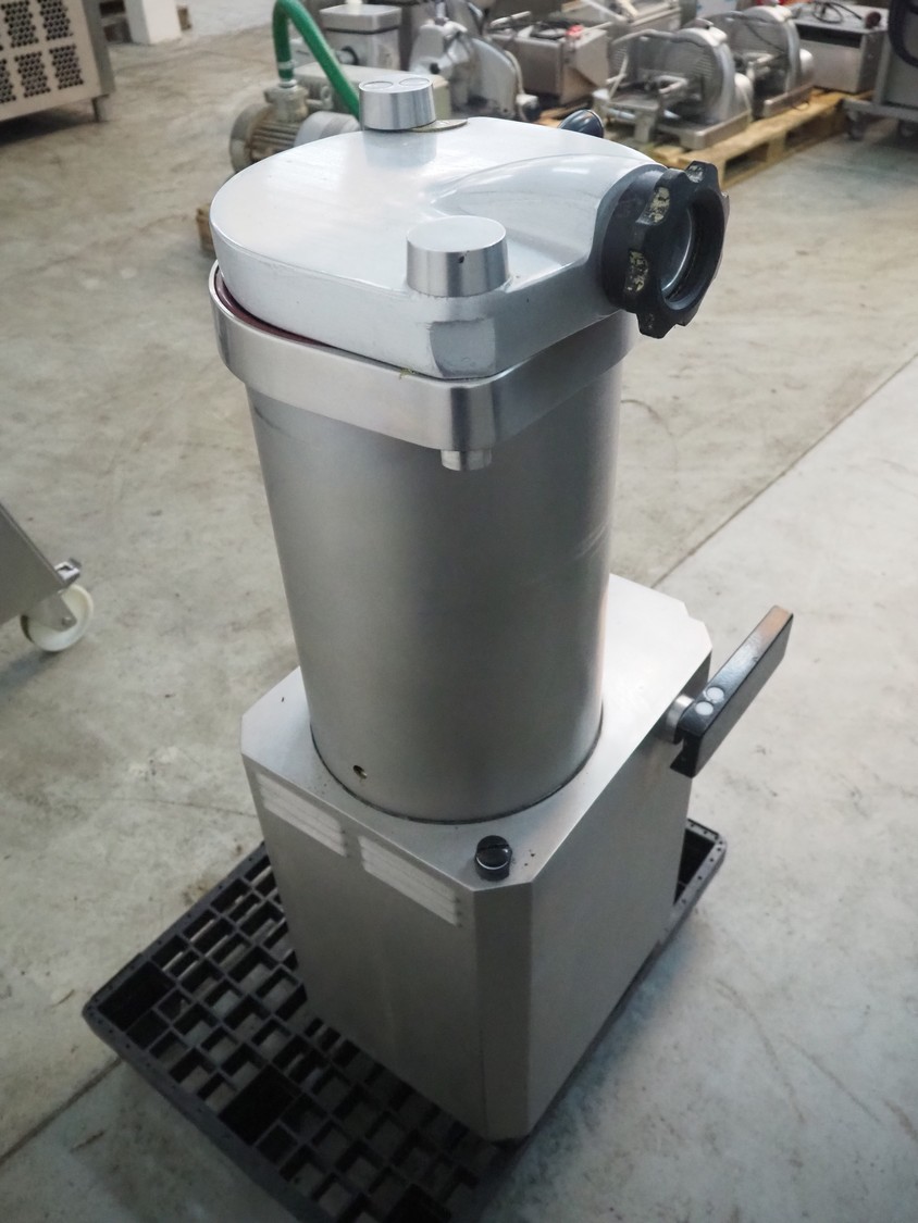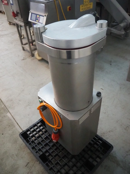 Mainca piston filler, inside dimensions: Ø 300 mm x 380 mm, total dimensions: 500 mm x 490 mm x 1100 mm.