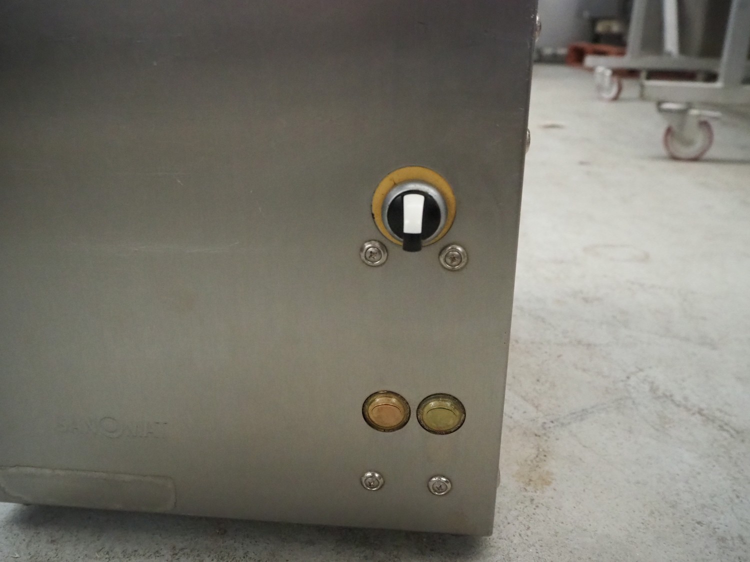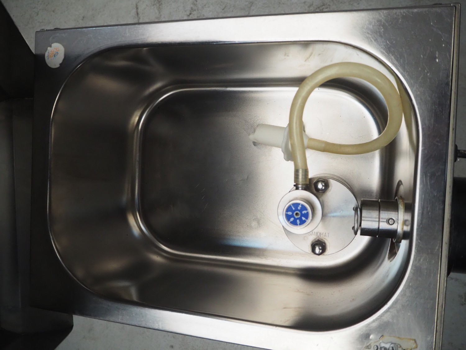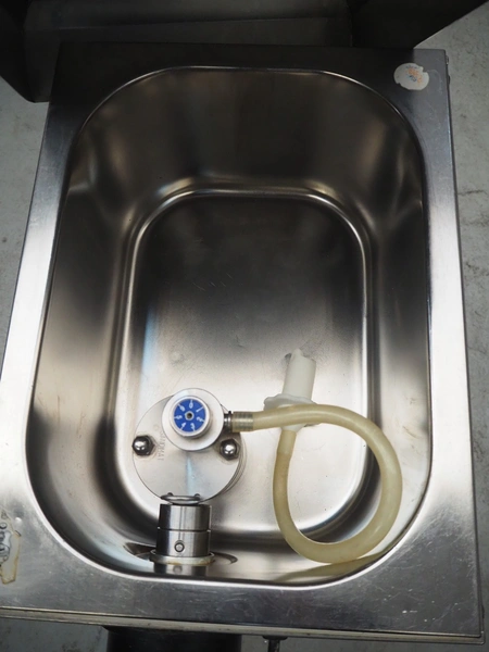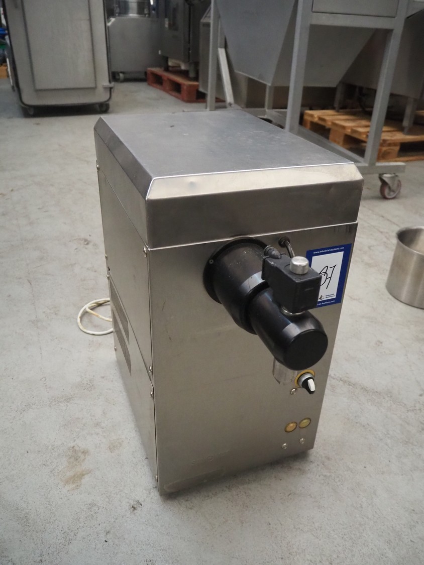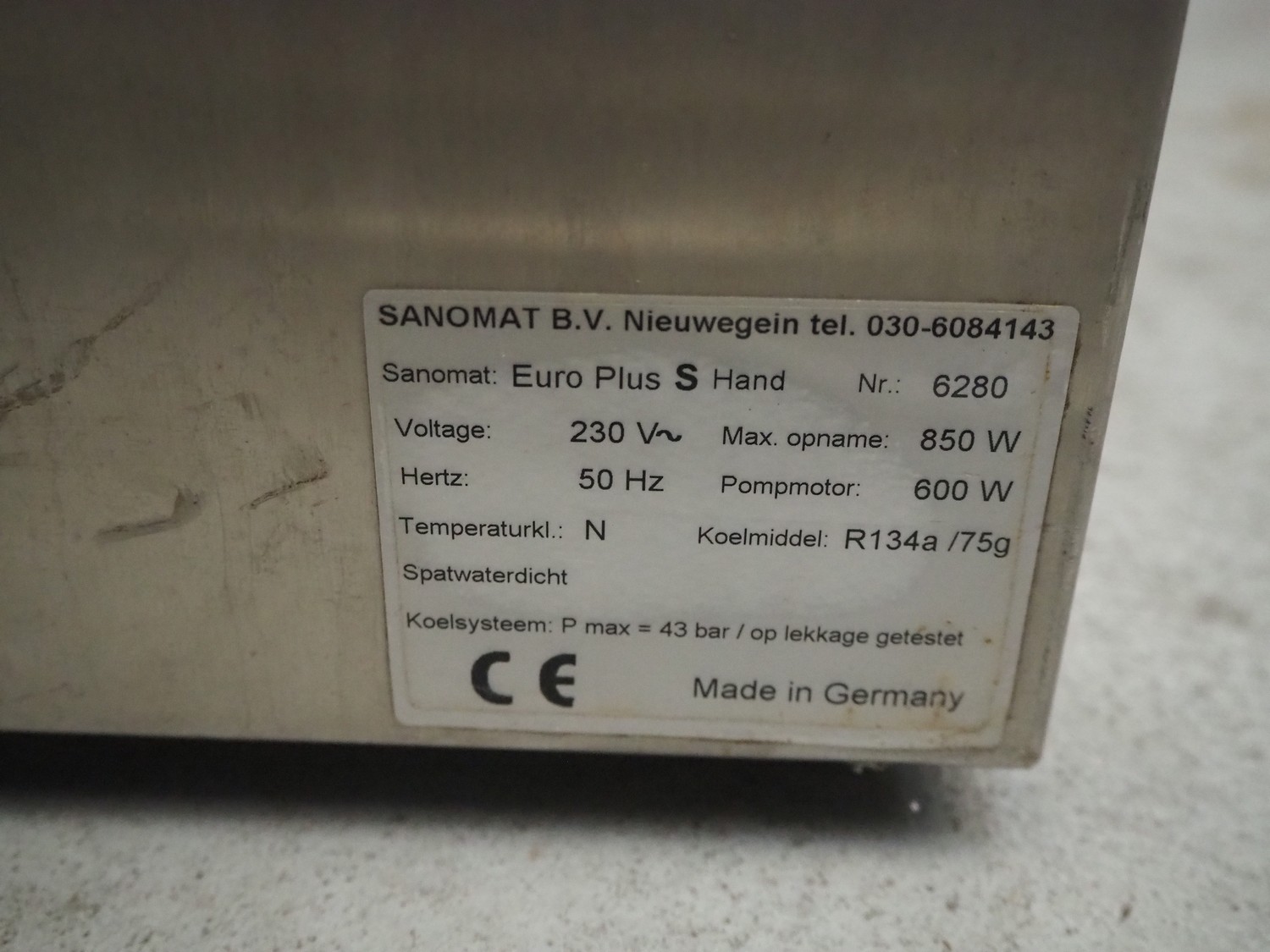 Sanomat B.V. whipped cream machine, type: Euro Plus S, number: 6280, 230 V, 50 Hz, 600 W, refrigerant: R134a/75 g, dimensions: 600 mm x 300 mm x 570 mm.