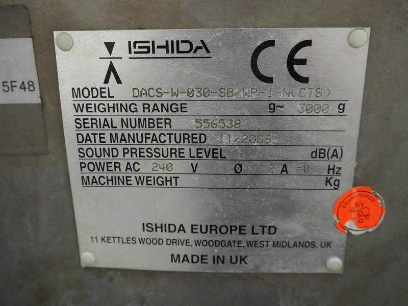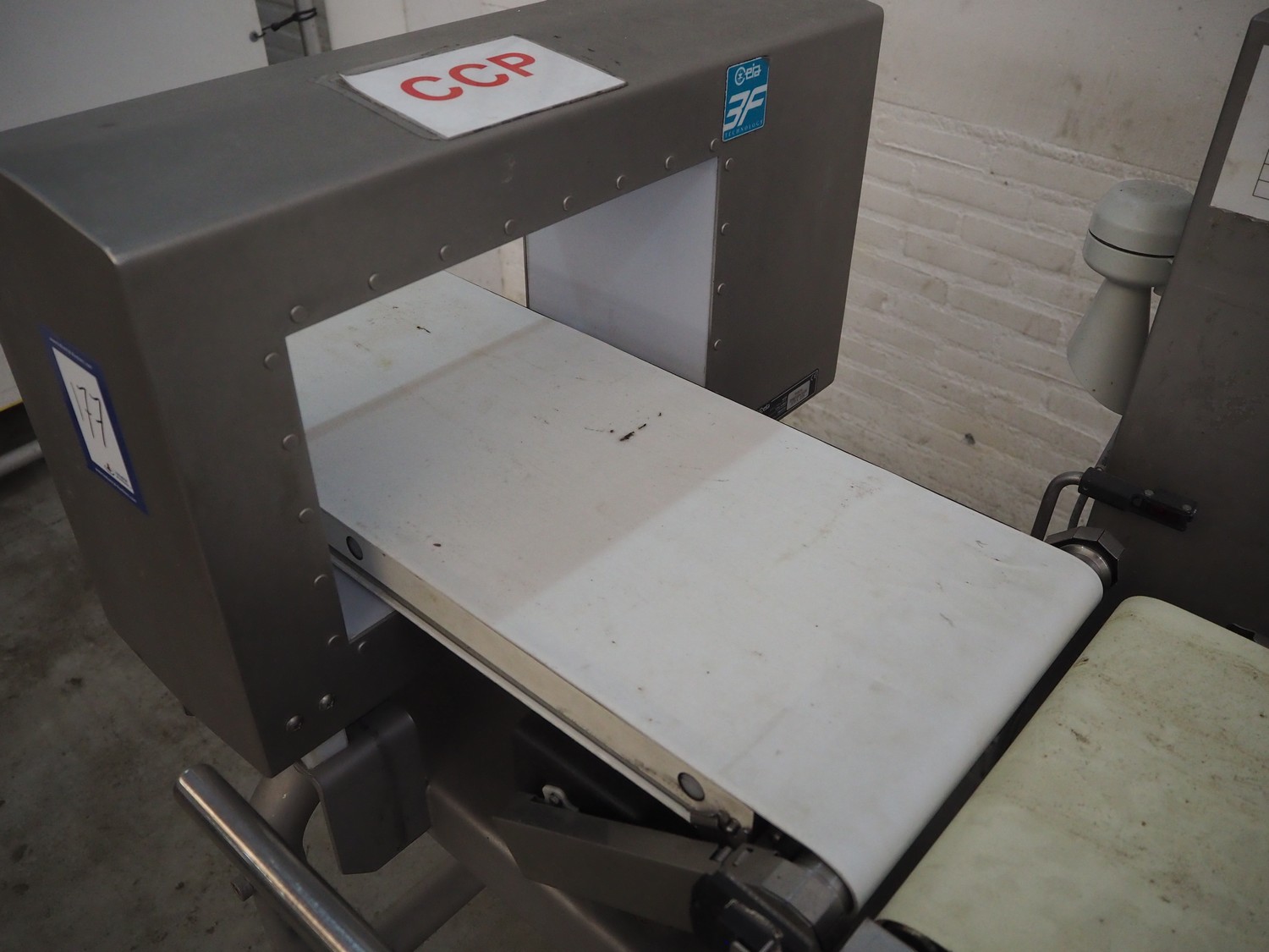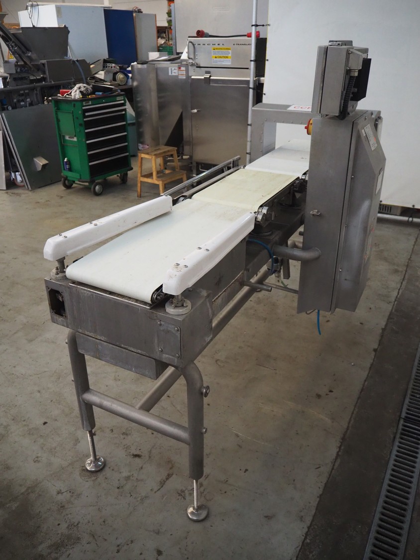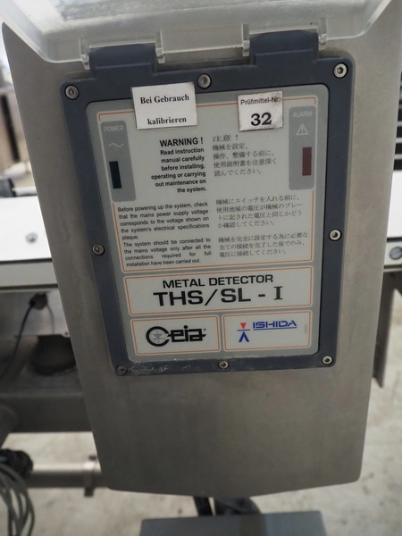 Ceia / Ishida metal detector with checkweigher and rejectors, model metal detector: THS/SL, serial number: 20600243006, clearance: 370 mm x 190 mm, model checkweigher: DACS-W-030-SB/WP-I-N(CTS), serial number: 556538, year of construction: 11/2006, 240 V, 50 Hz, 1 Ph, 2 A, maximum capacity: 3000 g, plastic belt, belt width: 300 mm, total dimensions: 2160 mm x 880 mm x 1530 mm.