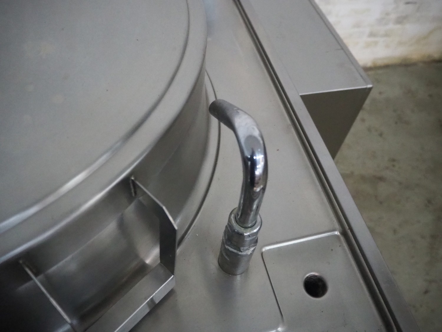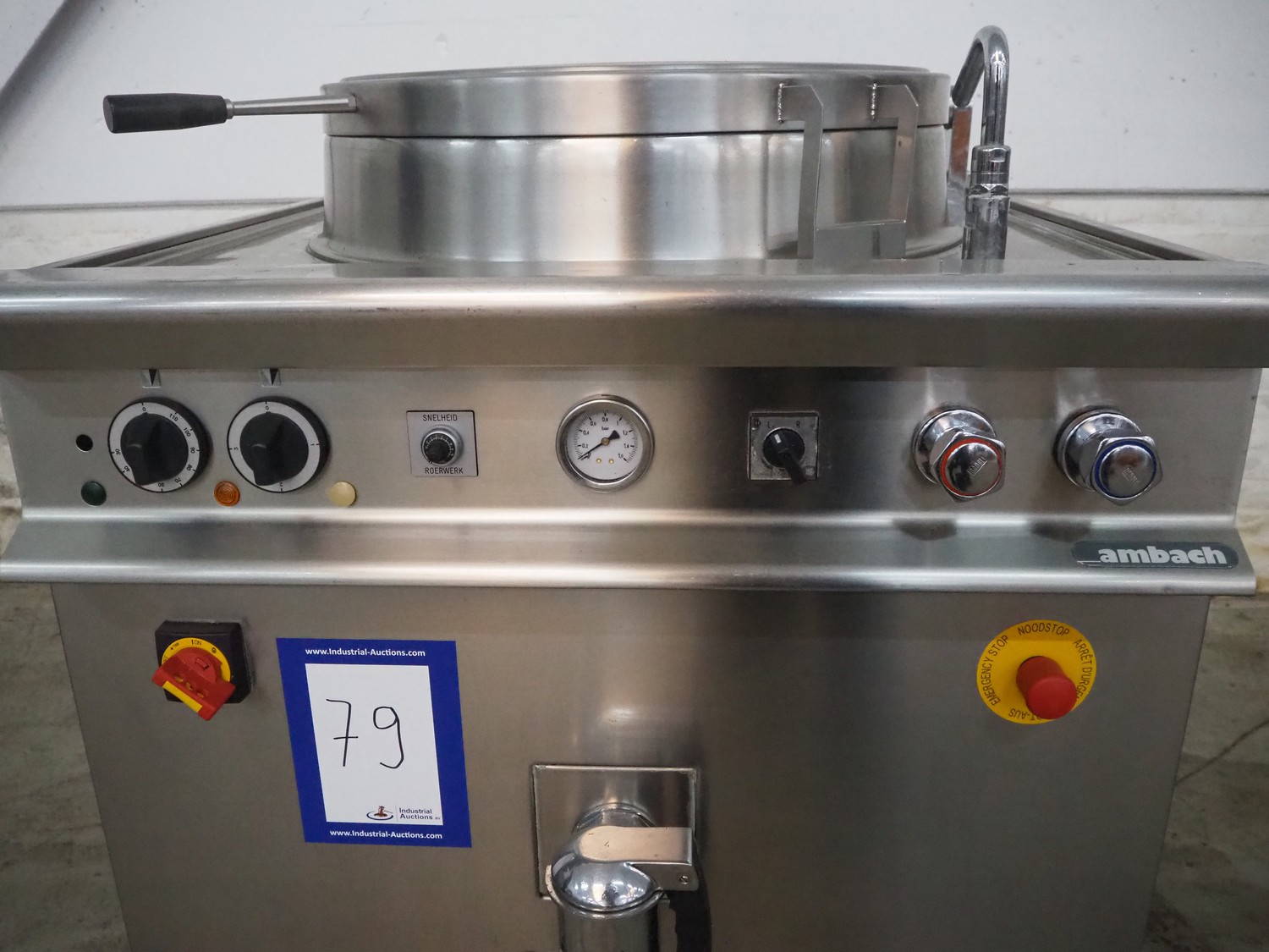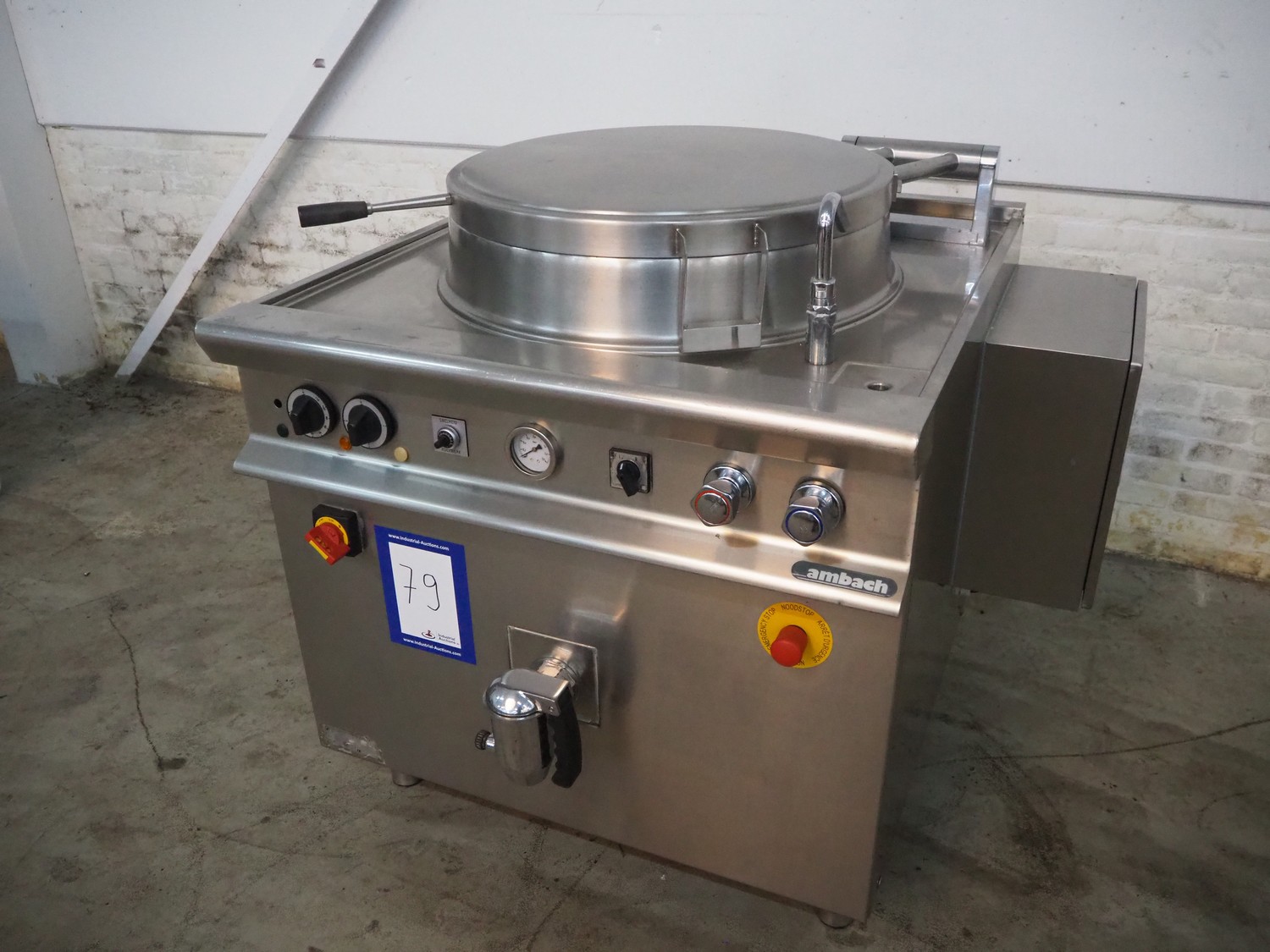 Ambach cooking vessel, model: ESK/150, number: 1021811, 400 V, 3 Ph, 50/60 Hz, 33.5 A, 22 kW, capacity: 150 liter, dimensions: 1120 mm x 1000 mm x 1050 mm.
