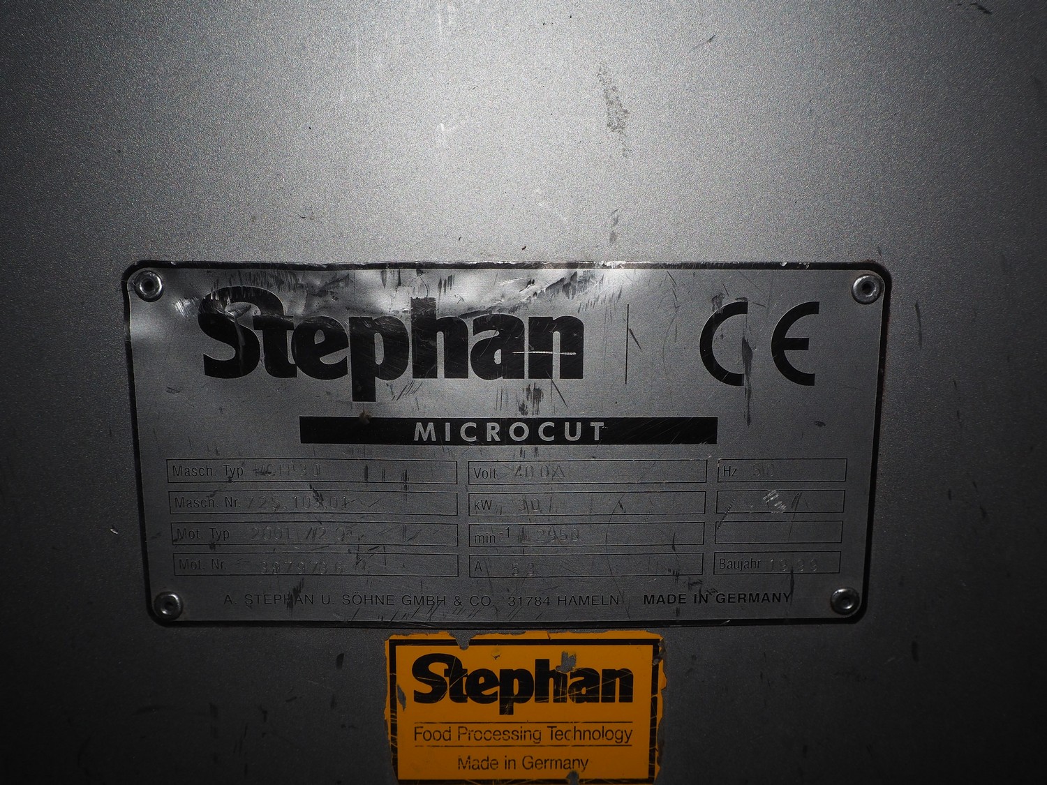 Stephan mobile micro cutter, type: MCH 30, number: 725.103.01, year of construction: 1999, 400 V, 50 Hz, 53 A, 30 kW, dimensions: 1750 mm x 1030 mm x 800 mm.