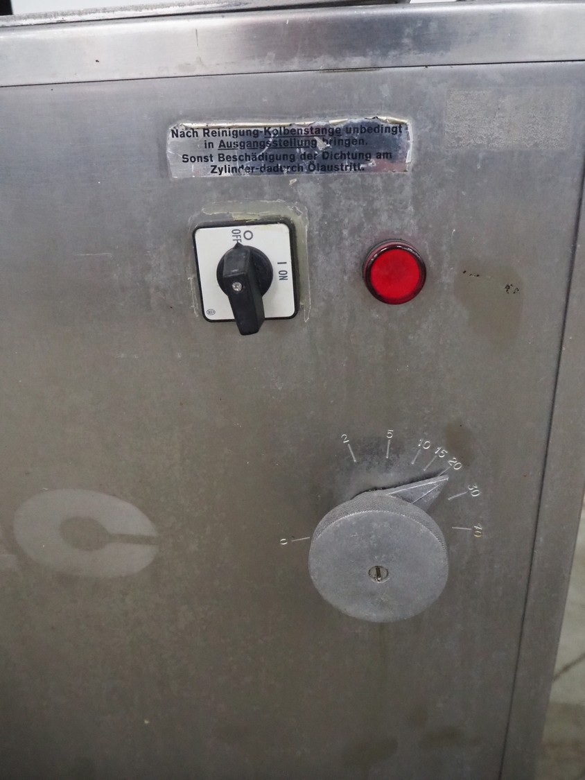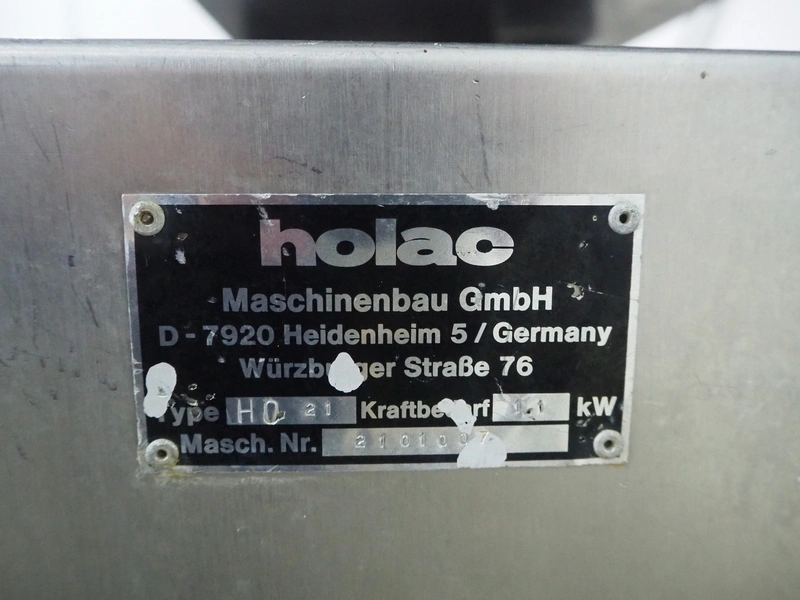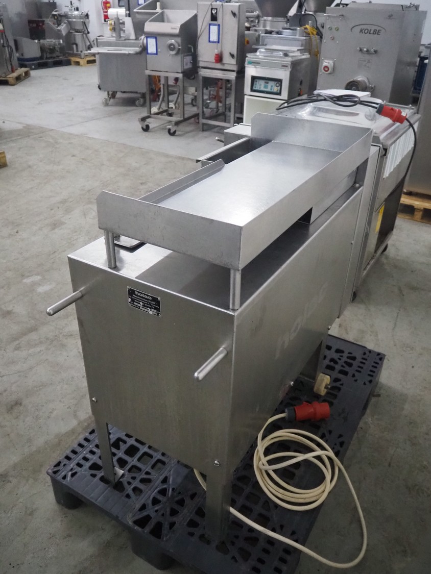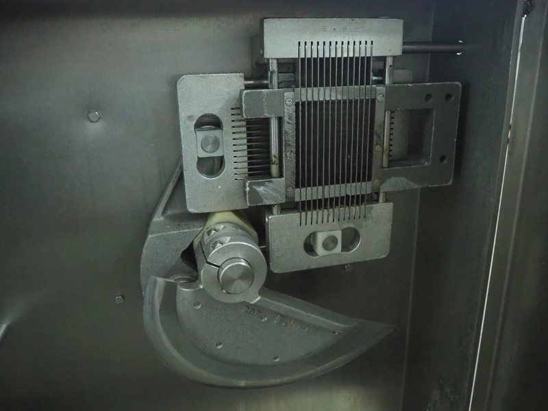 Holac mobile dicer, type: HO21, machine number: 2101007, 1.1 kW, chamber dimensions: 80 mm x 80 mm x 300 mm, total dimensions: 1200 mm x 1550 mm x 1000 mm.