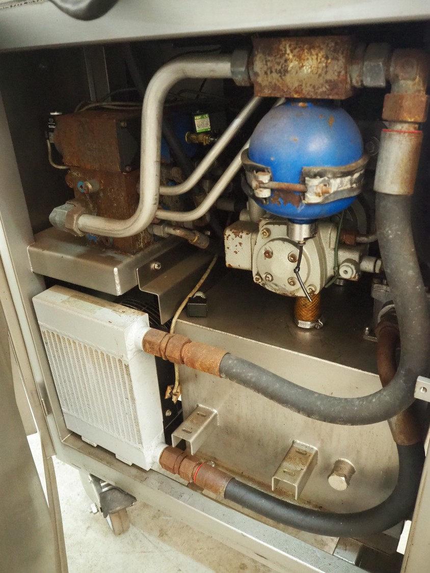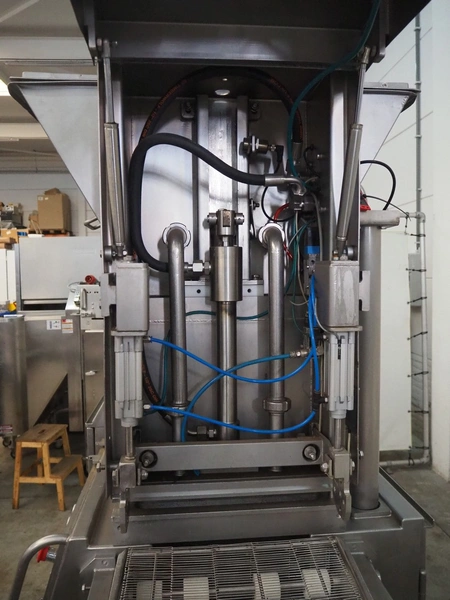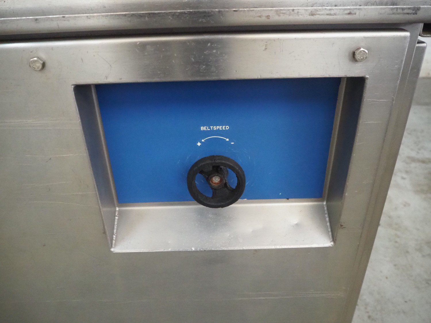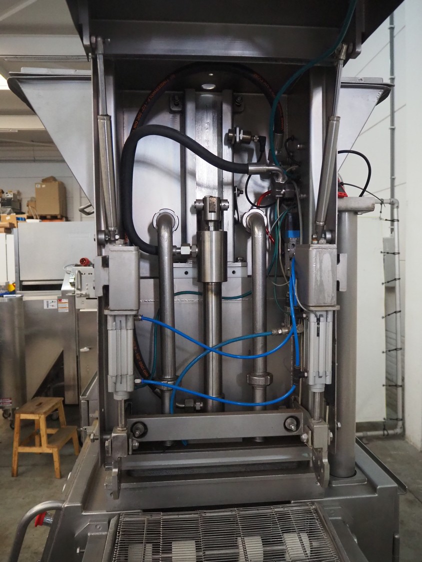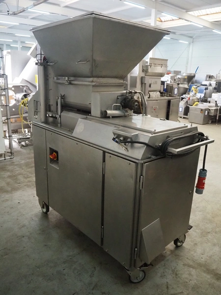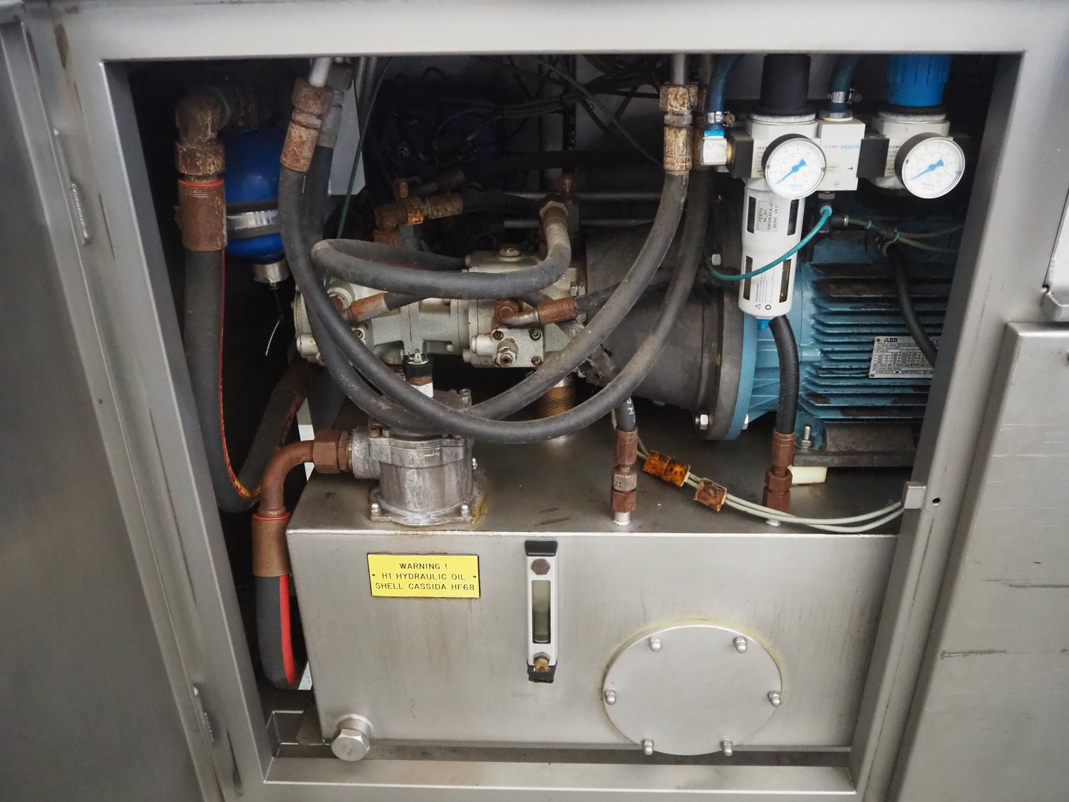 CFS mobile forming machine, type: VM400HSE, machine number: 1880, year of construction: 1996, 415 V, 3 Ph, 50 Hz, 17.67 A, 16.57 kW, weight: 1186 kg, inside dimensions hopper: 600 mm x 200 mm x 700 mm, s/s mesh belt, belt width: 400 mm, total dimensions: 2500 mm x 900 mm x 2100 mm.