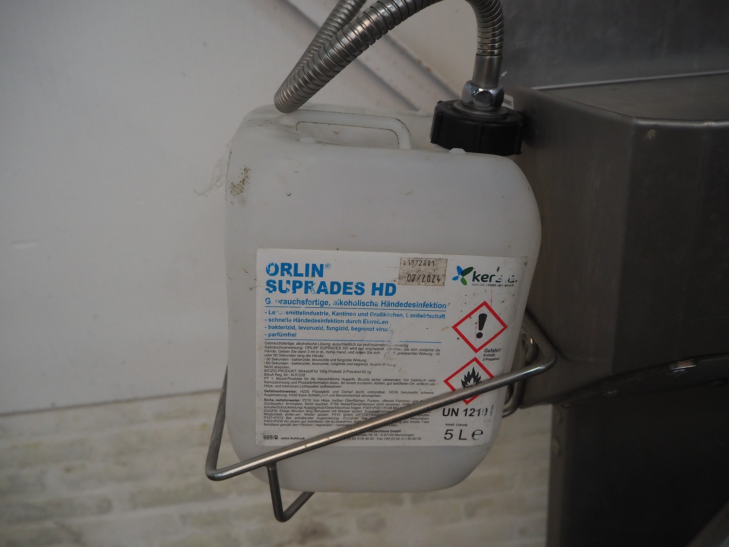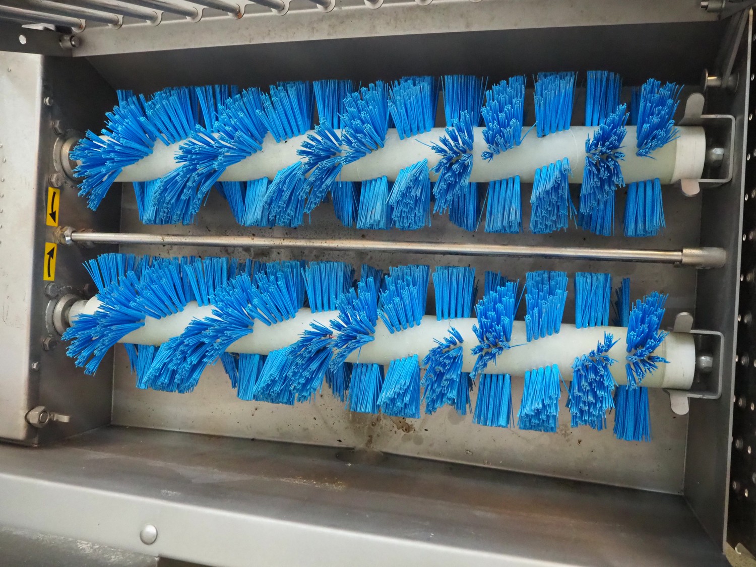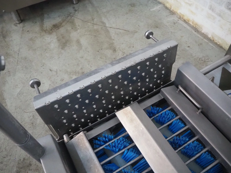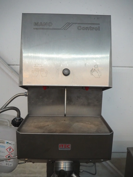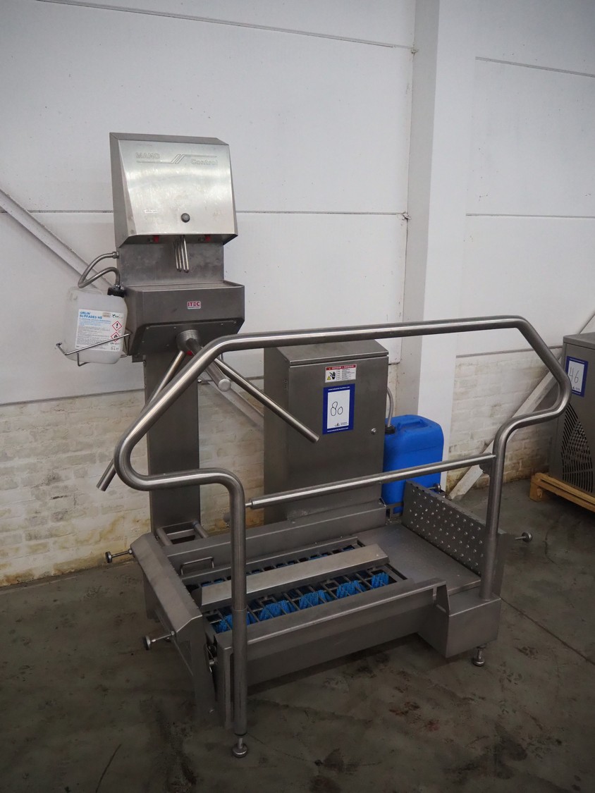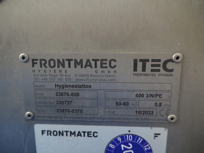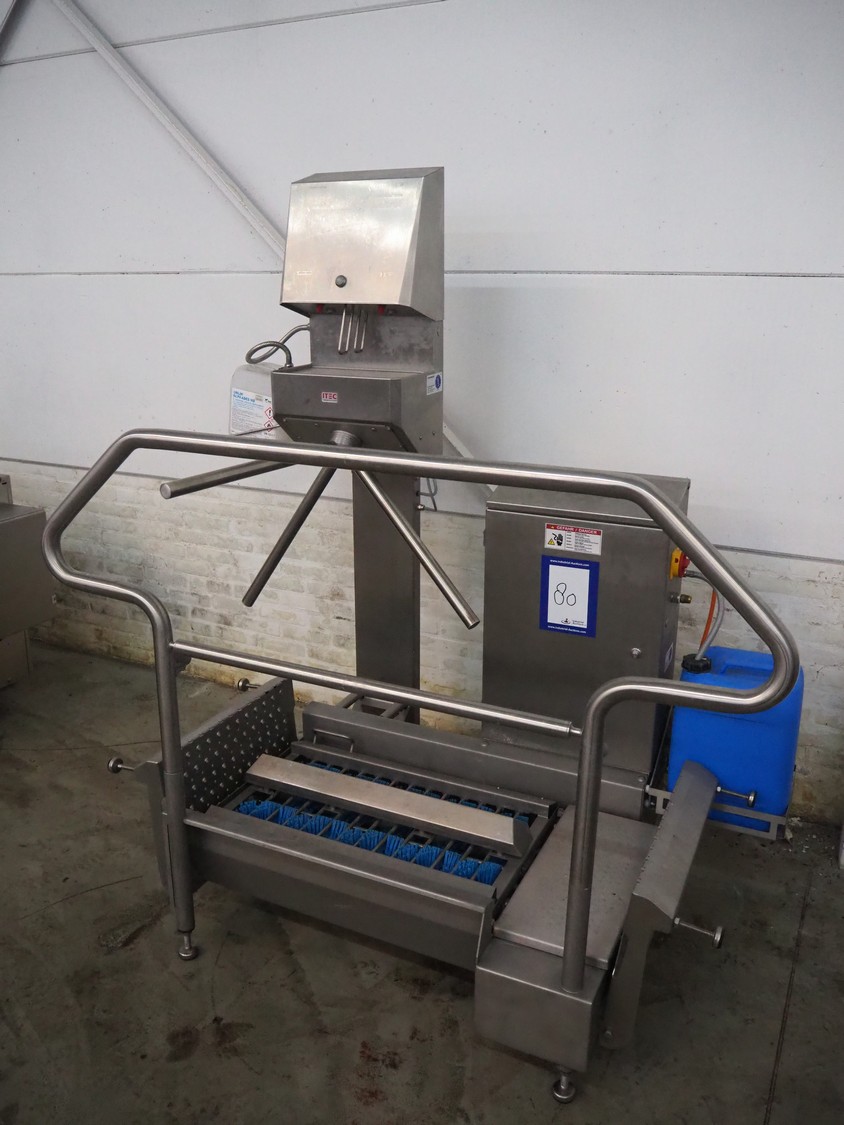 Itec Food Technology hygiene station, type: 23876-800, number: 0370, year of construction: 10/2022, 400 V, 3 Ph, 50/60 Hz, 0.8 kW, brush width: (2x) 100 mm, total dimensions: 1600 mm x 900 mm x 1850 mm.