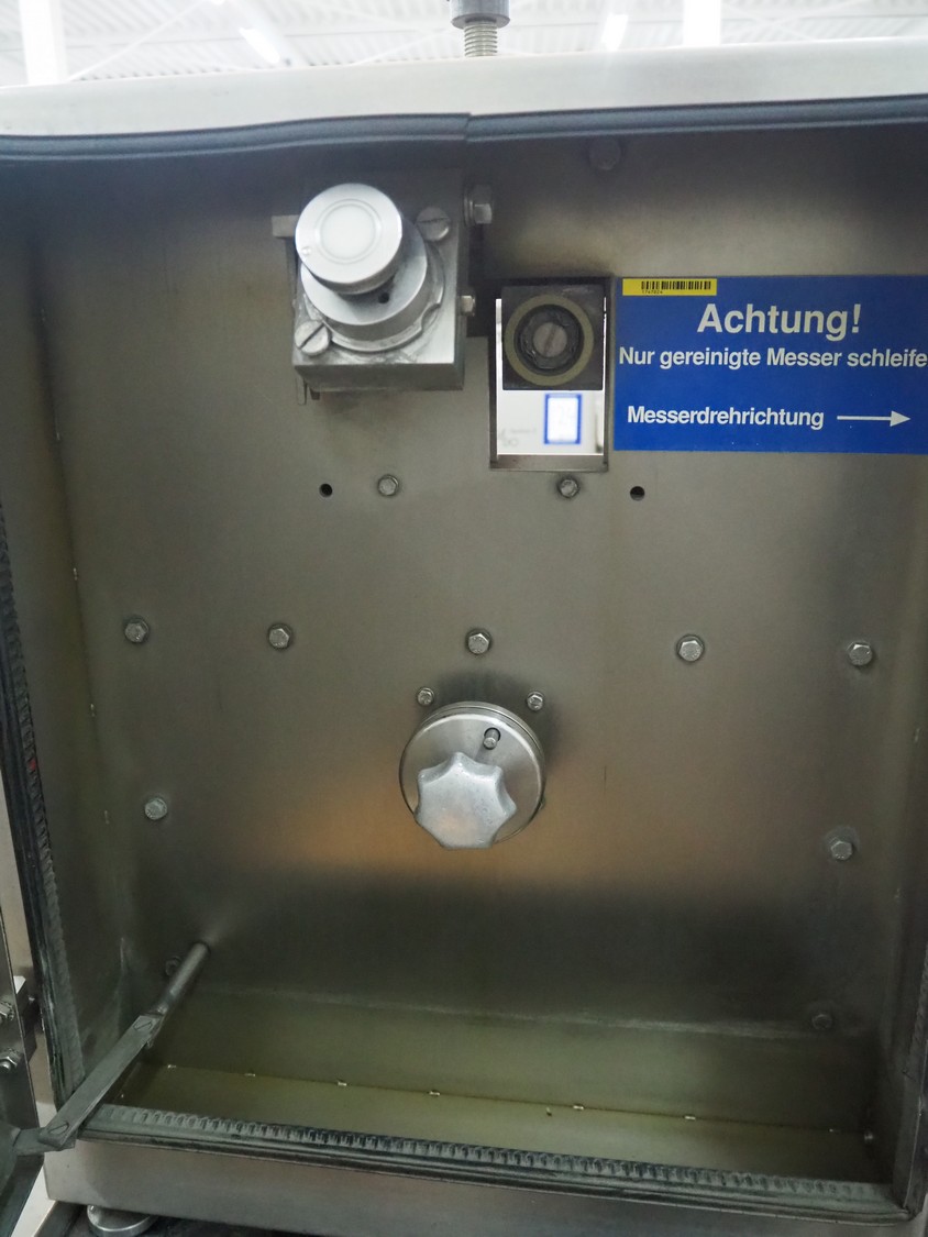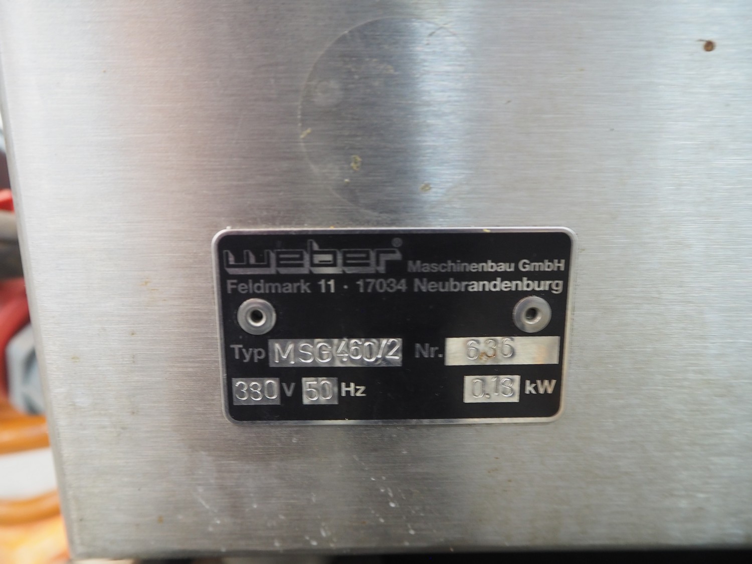 Weber knife sharpener, type: MSG460/2, number: 636, 380 V, 50 Hz, 0.13 kW, dimensions: 580 mm x 550 mm x 790 mm. Trolley not included.