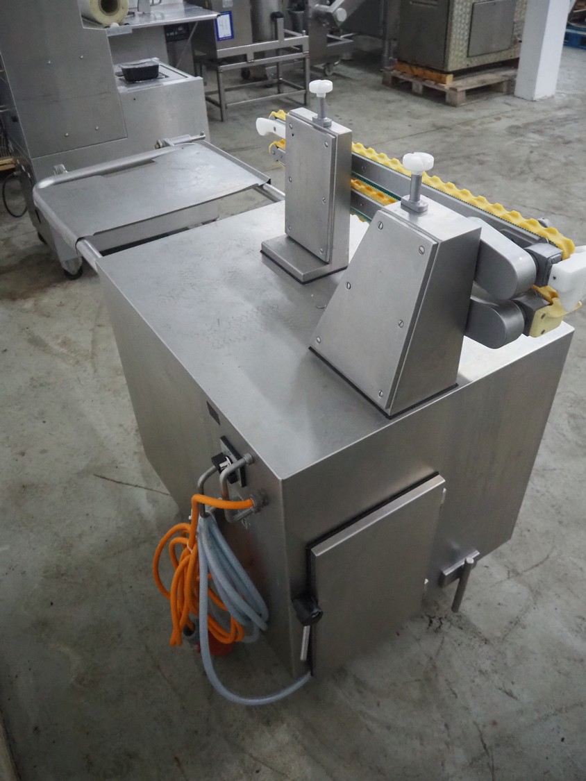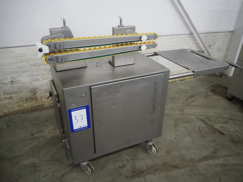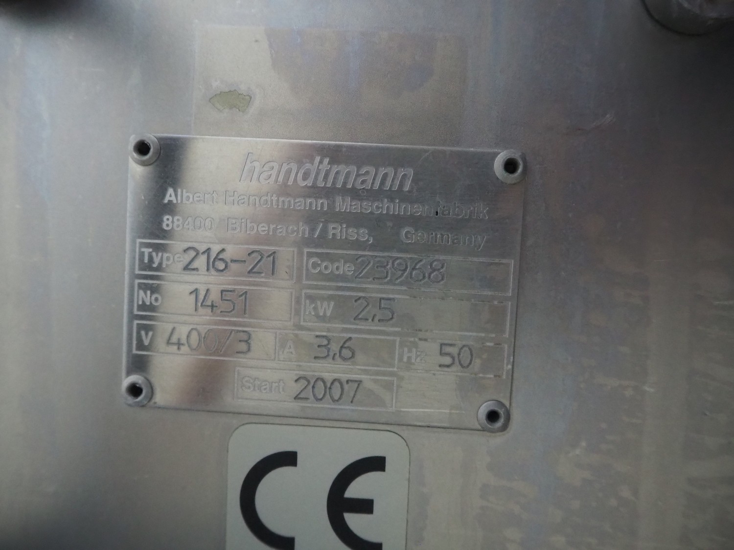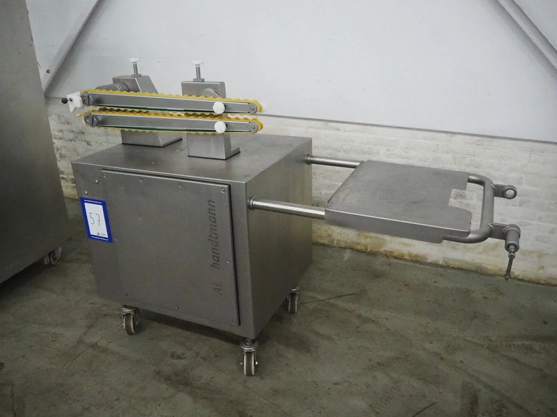 Handtmann mobile linking machine, type: 216-21, number: 1451, year of construction: 2007, 400 V, 3 Ph, 50 Hz, 2.5 kW, 3.6 A, dimensions: 1900 m x 850 mm x 1130 mm.