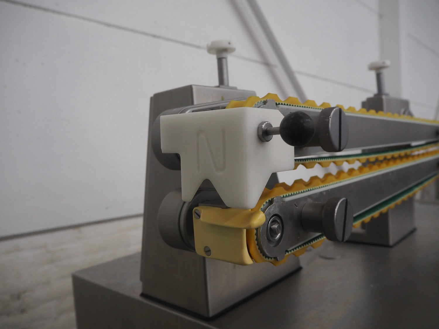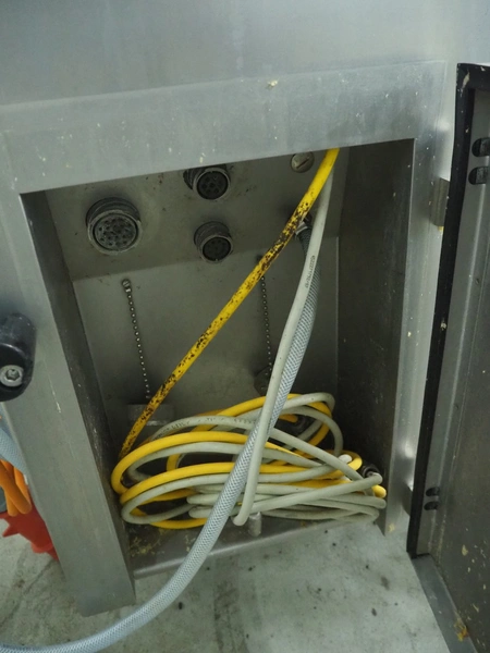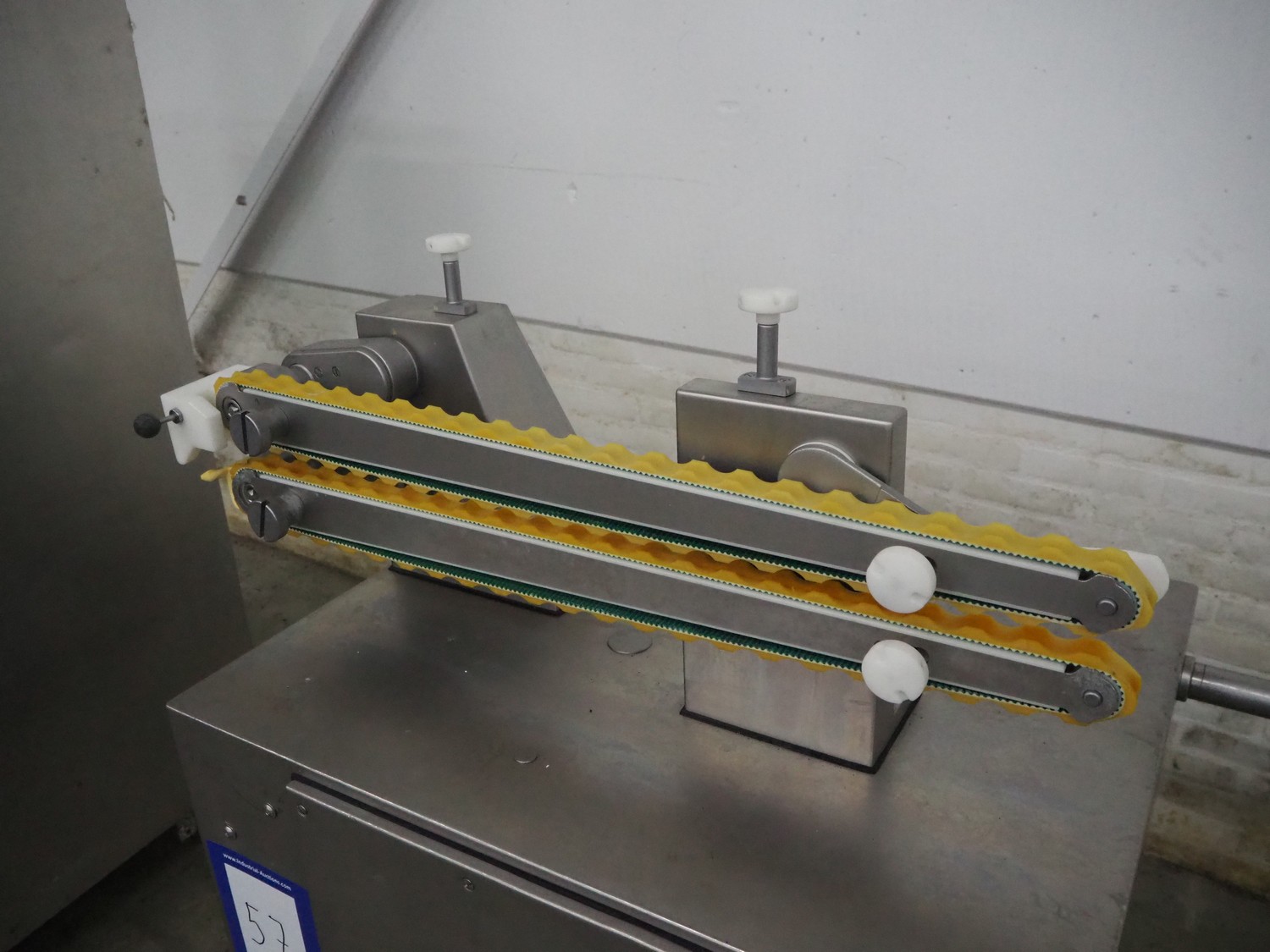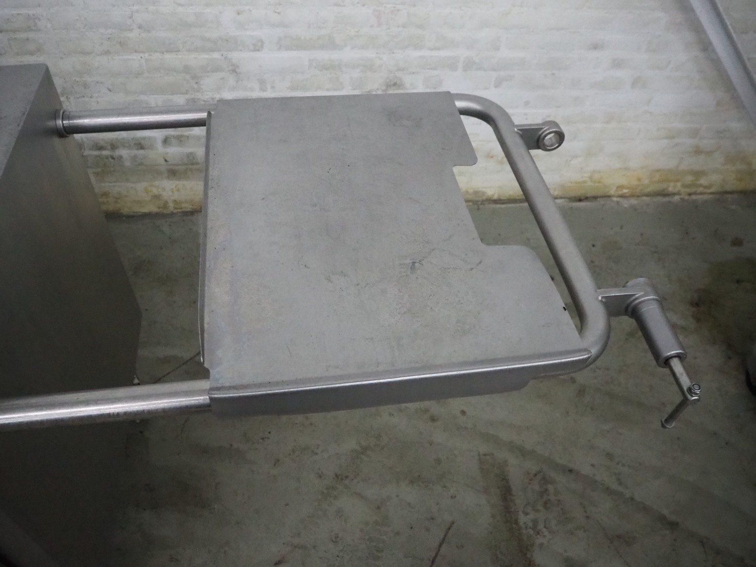 Handtmann mobile linking machine, type: 216-21, number: 1451, year of construction: 2007, 400 V, 3 Ph, 50 Hz, 2.5 kW, 3.6 A, dimensions: 1900 m x 850 mm x 1130 mm.
