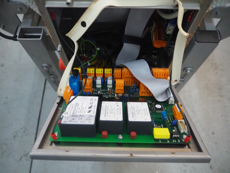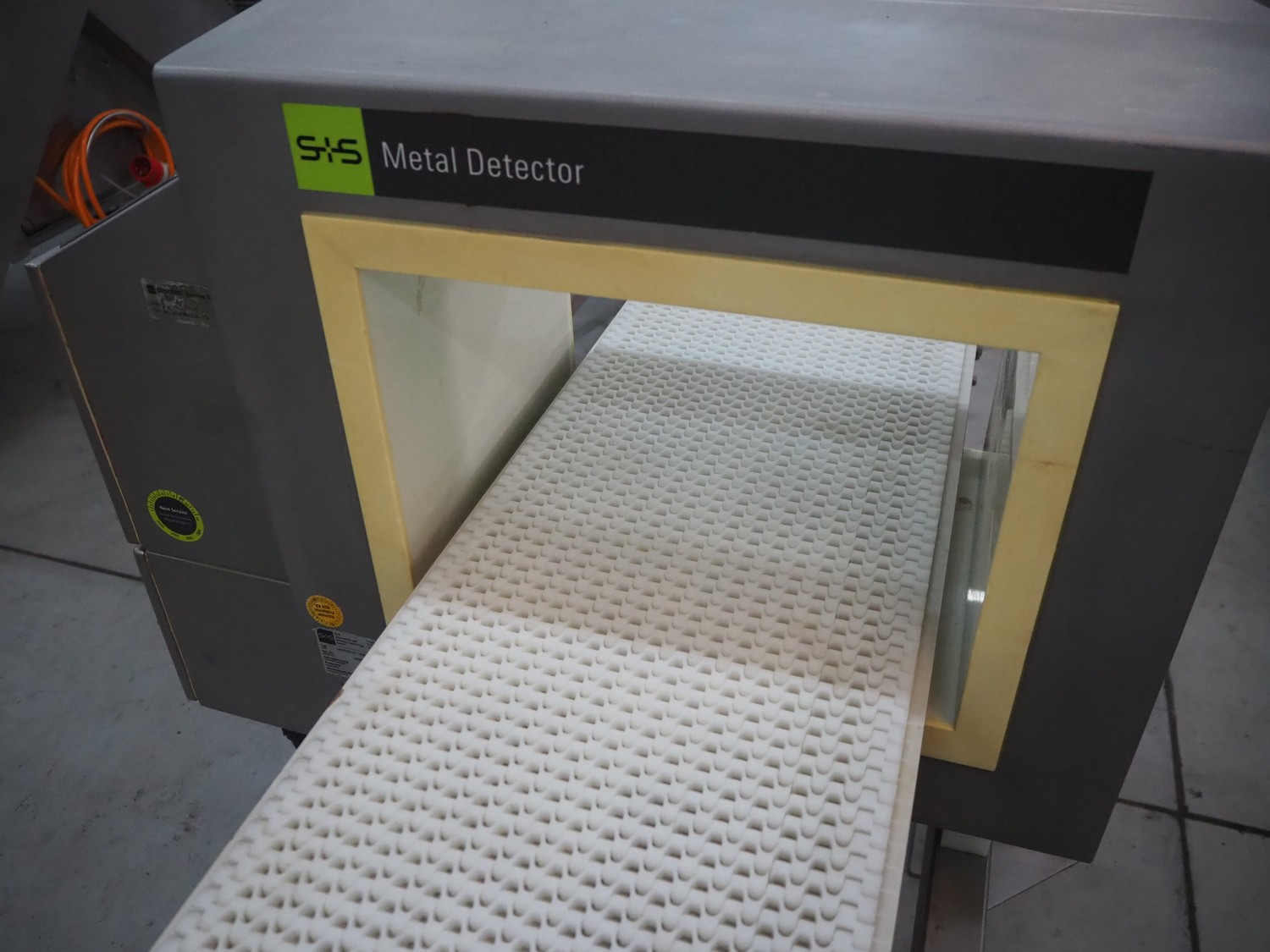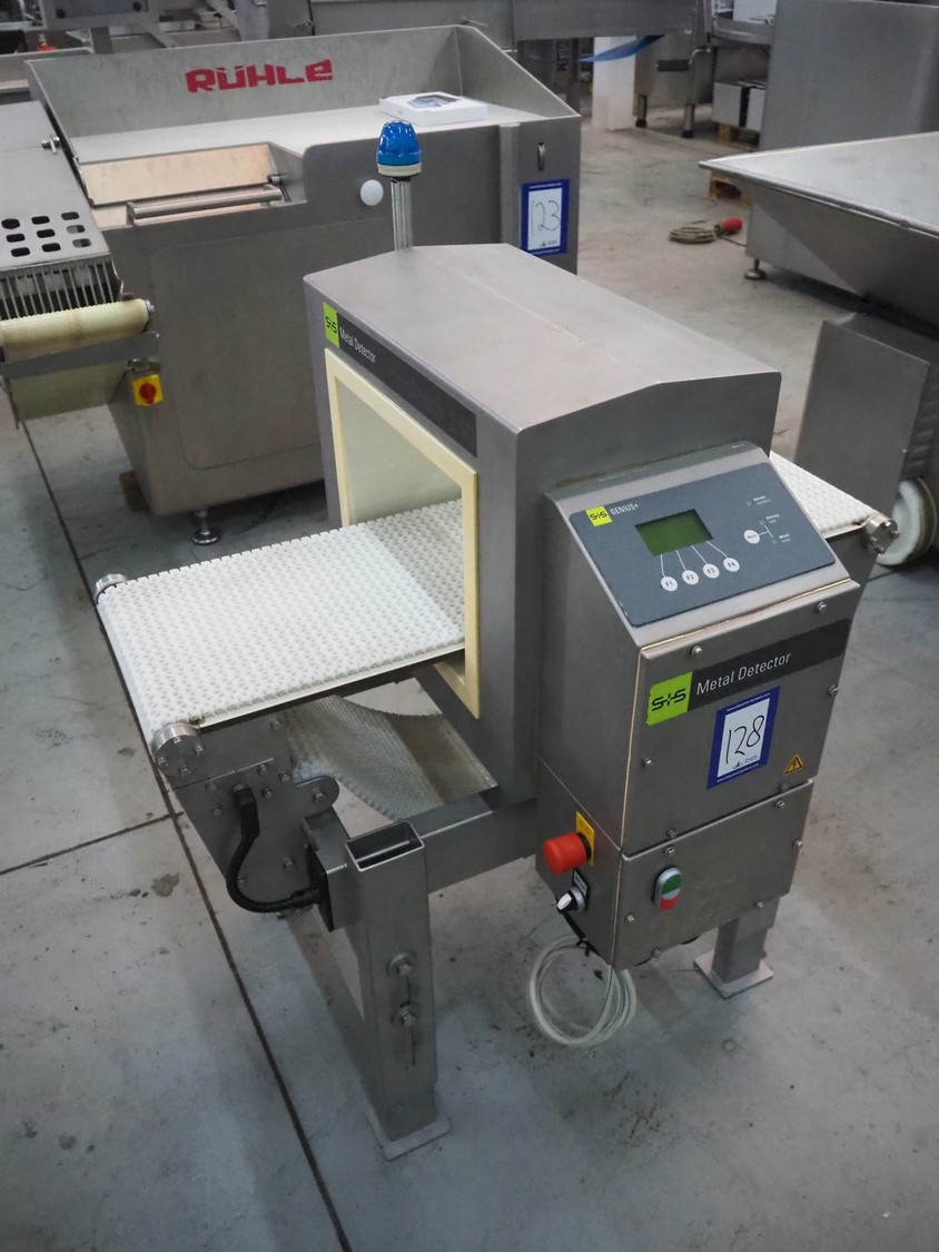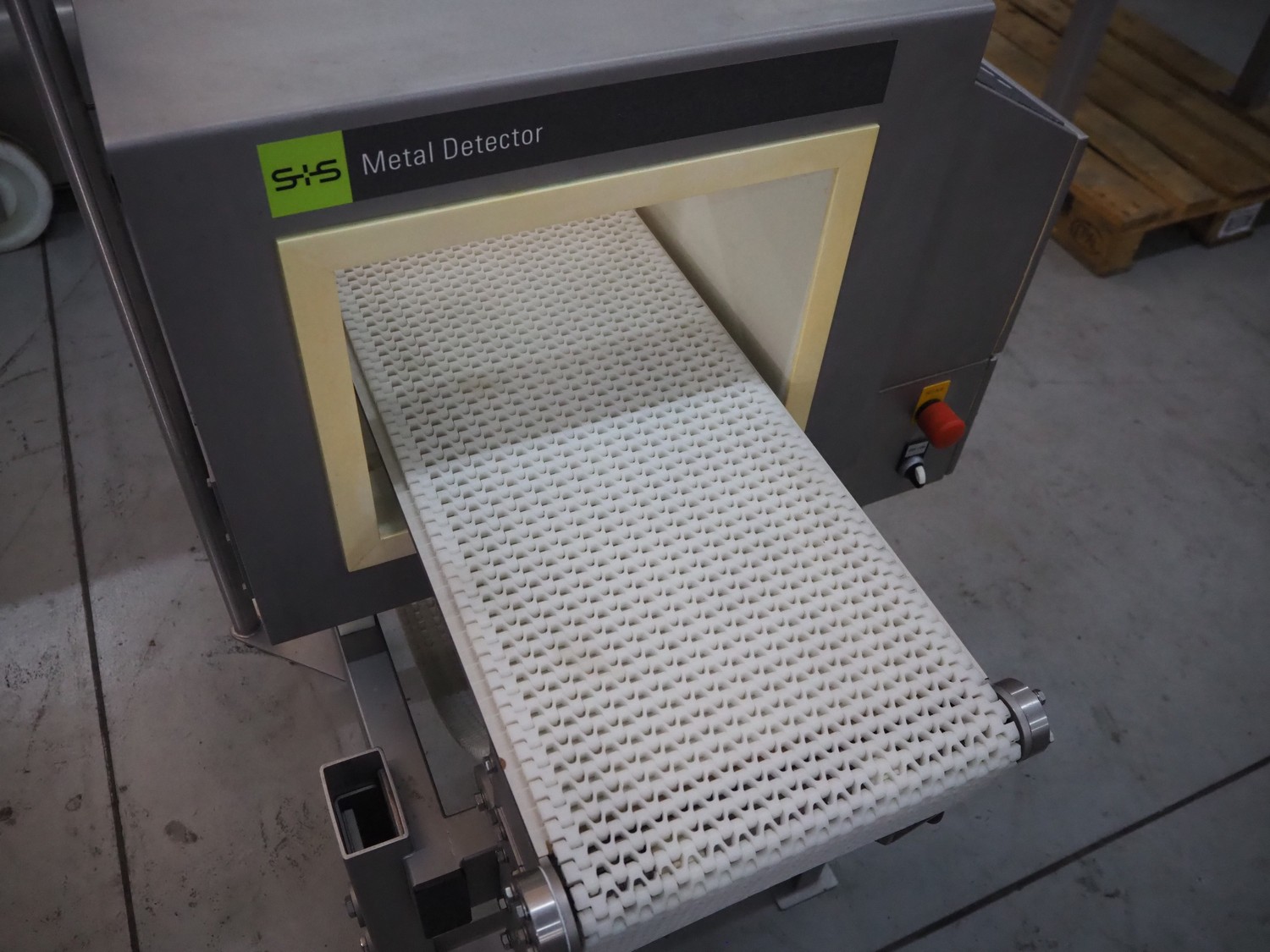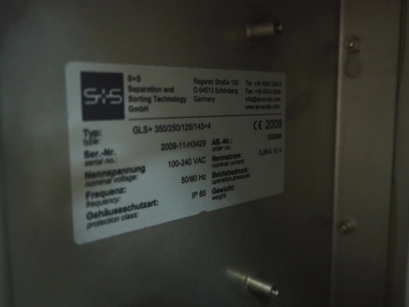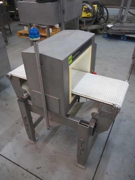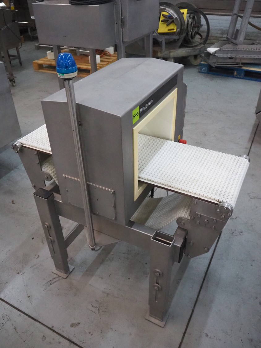 S+S Separation and Sorting Technology GmbH metal detector, type: VARICON-W 1000/300/350/250, serial number: 2009-11-H3429, year of construction: 2009, 230/115 V, 50/60 Hz, 0.7/1.4 A, plastic mesh belt, belt width: 300 mm, clearance: 350 mm x 200 mm, total dimensions: 1000 mm x 740 mm x 1210 mm.