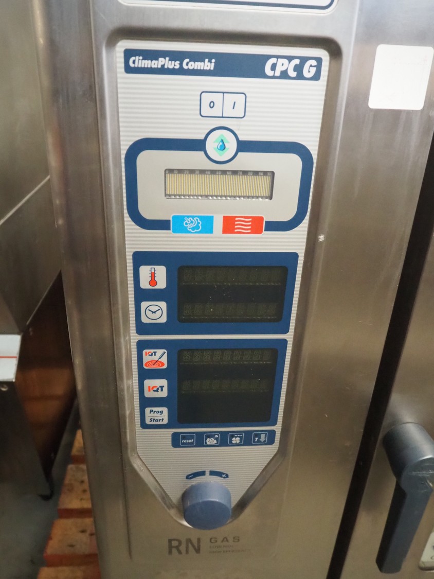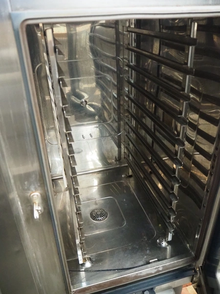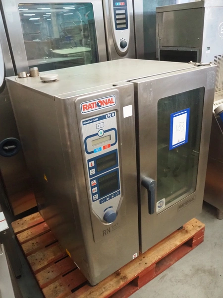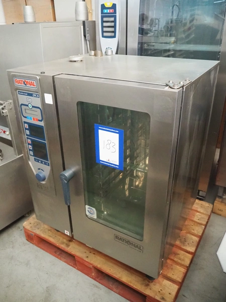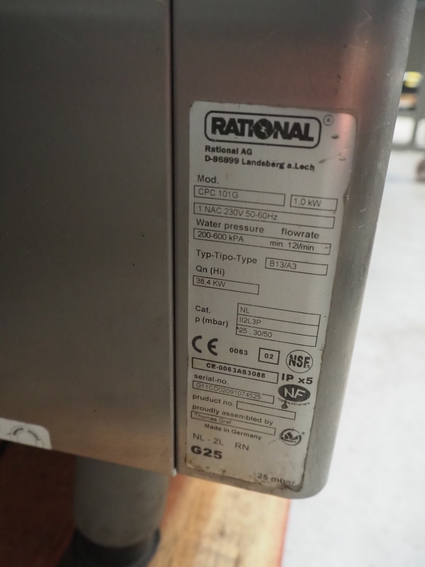 Rational combi steamer, model: CPC 101G, serial number: G11CD02091074525, 230 V, 50-60 Hz, 1.0 kW, 10 floors, capacity: 10x 1/1 GN, 150 kg, dimensions: 900 mm x 850 mm x 1060 mm.