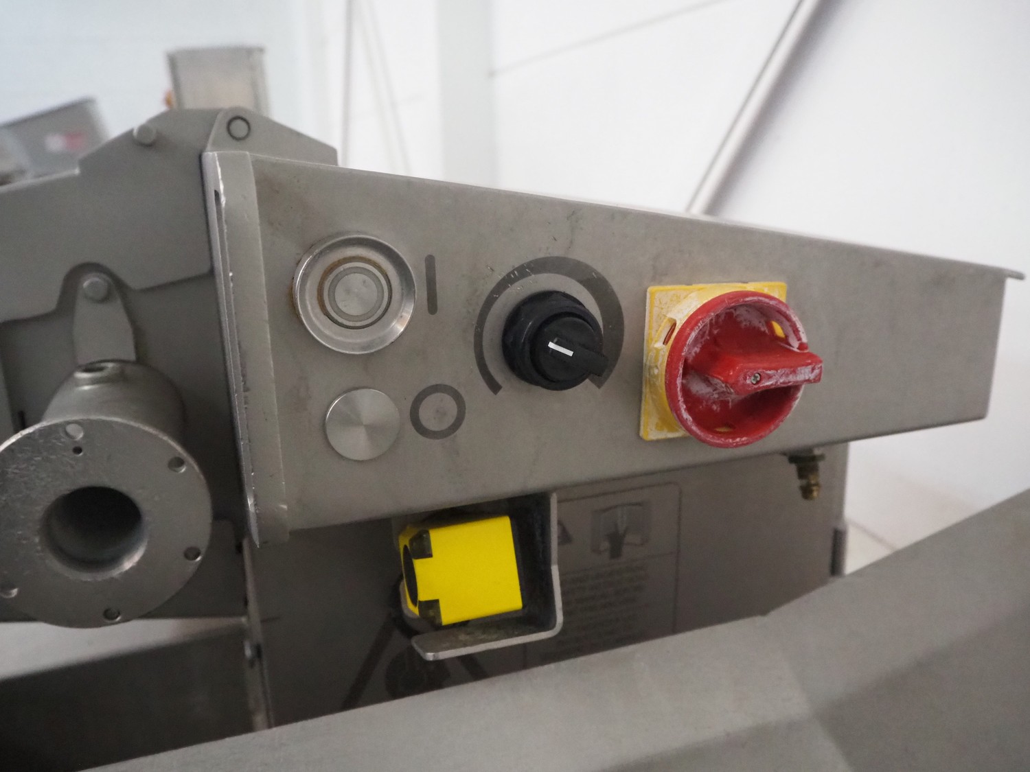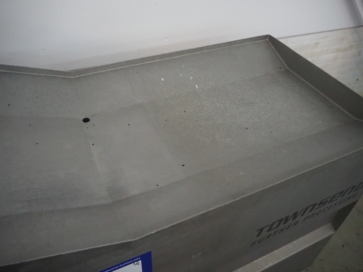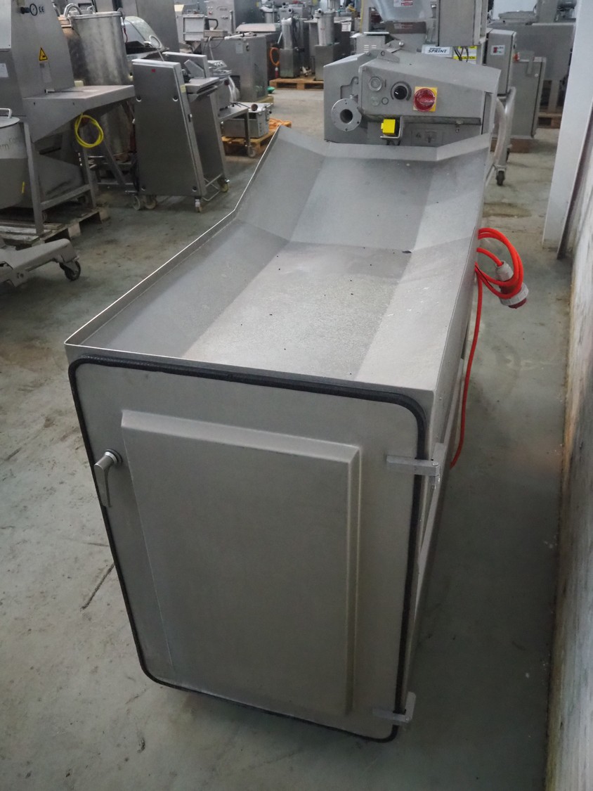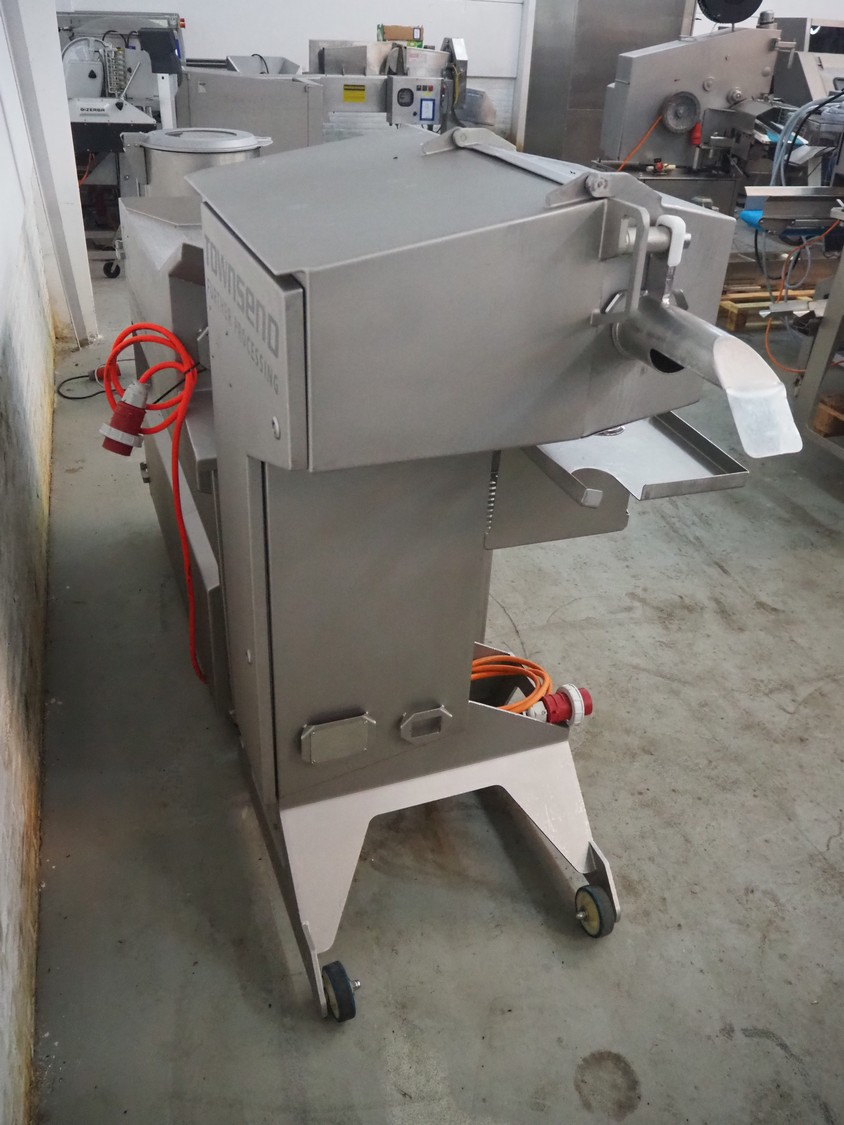 Townsend mobile sausage peeler with infeed table, model: 2800 BL, type: 9833929, serial number: 10401452, year of construction: 2017, 400 V, 3 Ph, 50 Hz, weight: 340 kg, dimensions: 700 mm x 950 mm x 1440 mm and 670 mm x 1350 mm x 1200 mm.