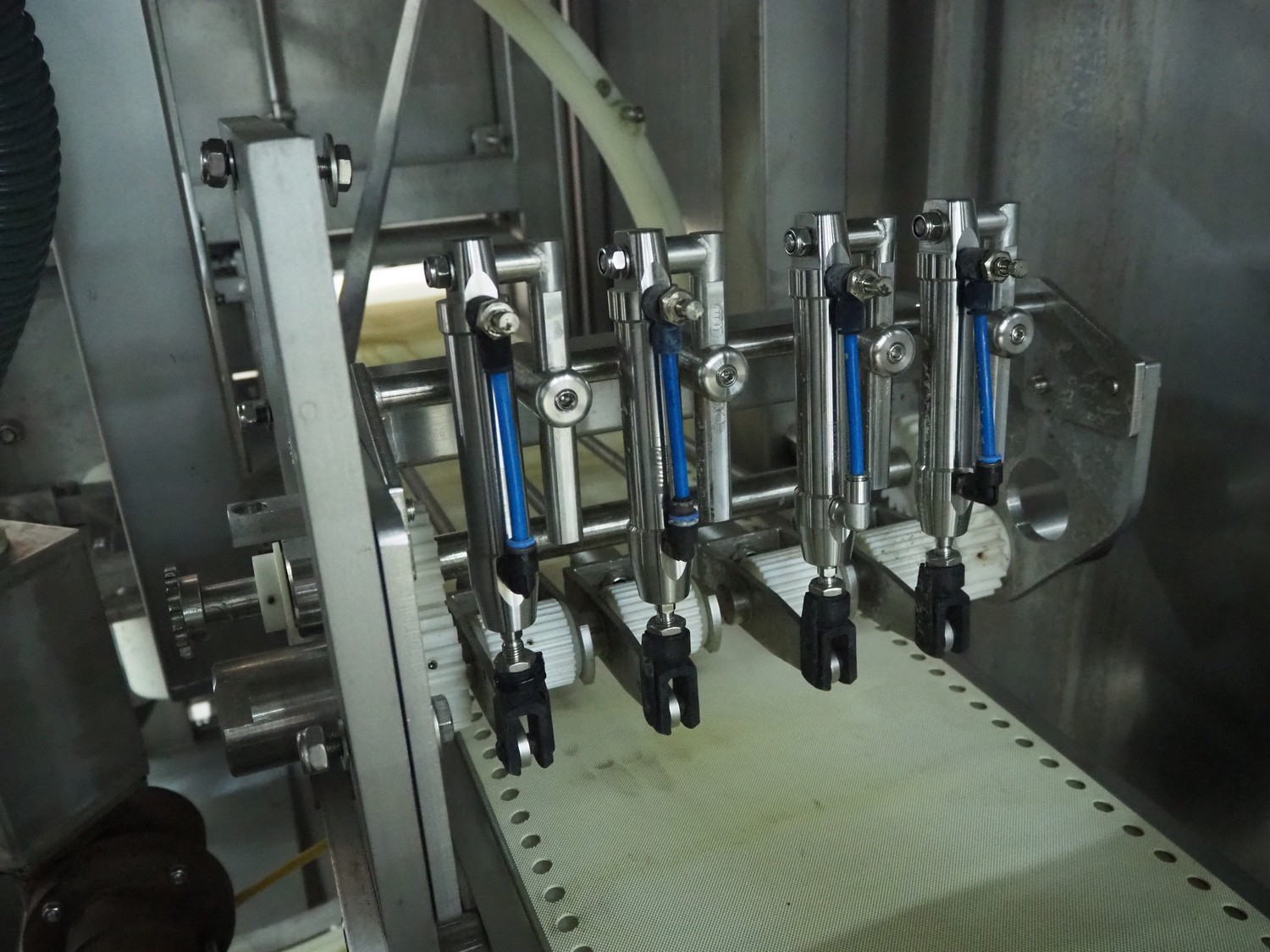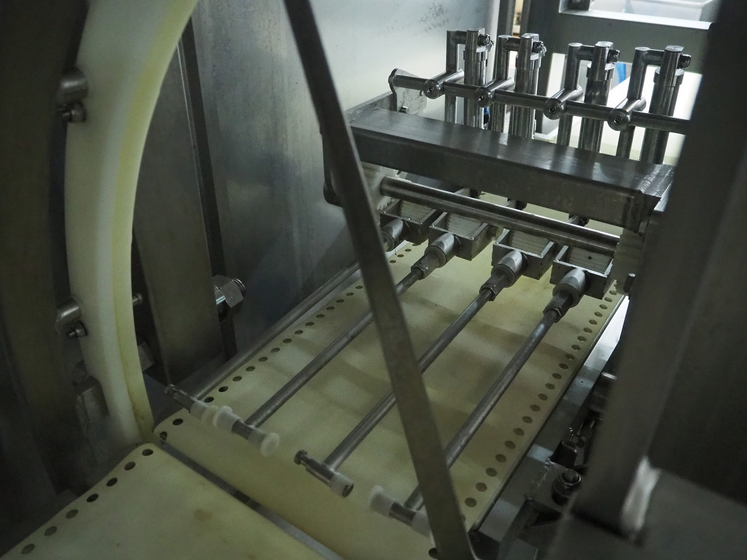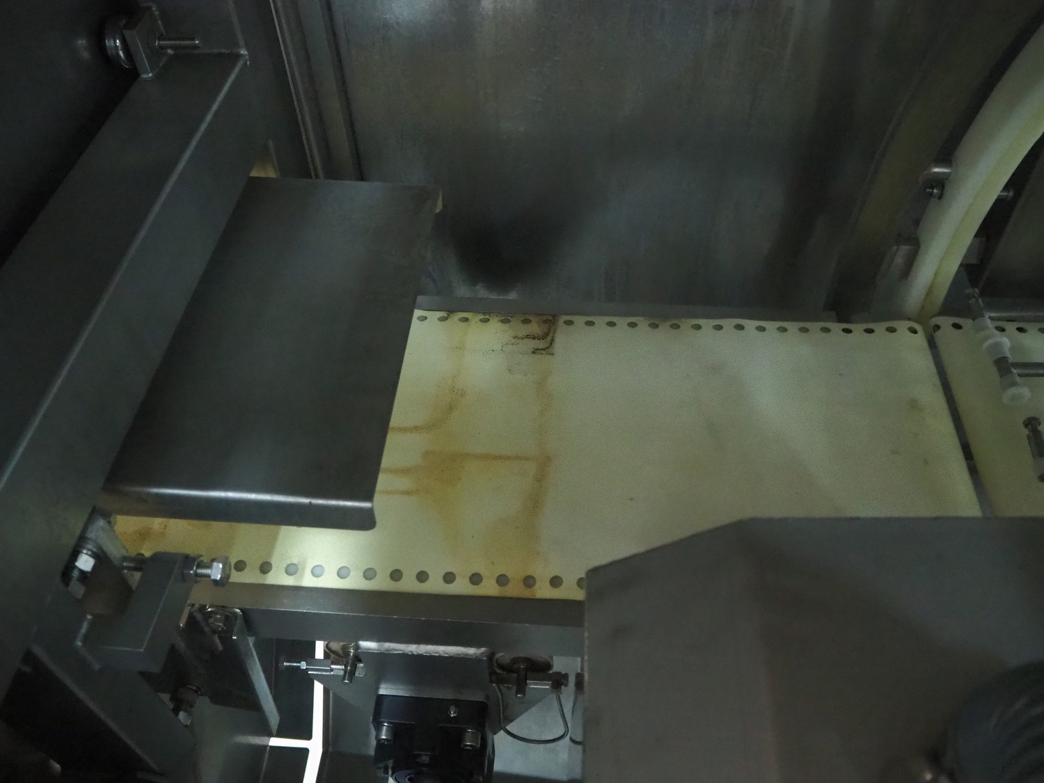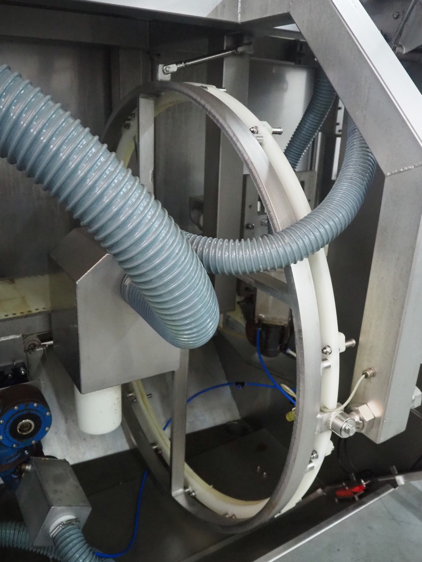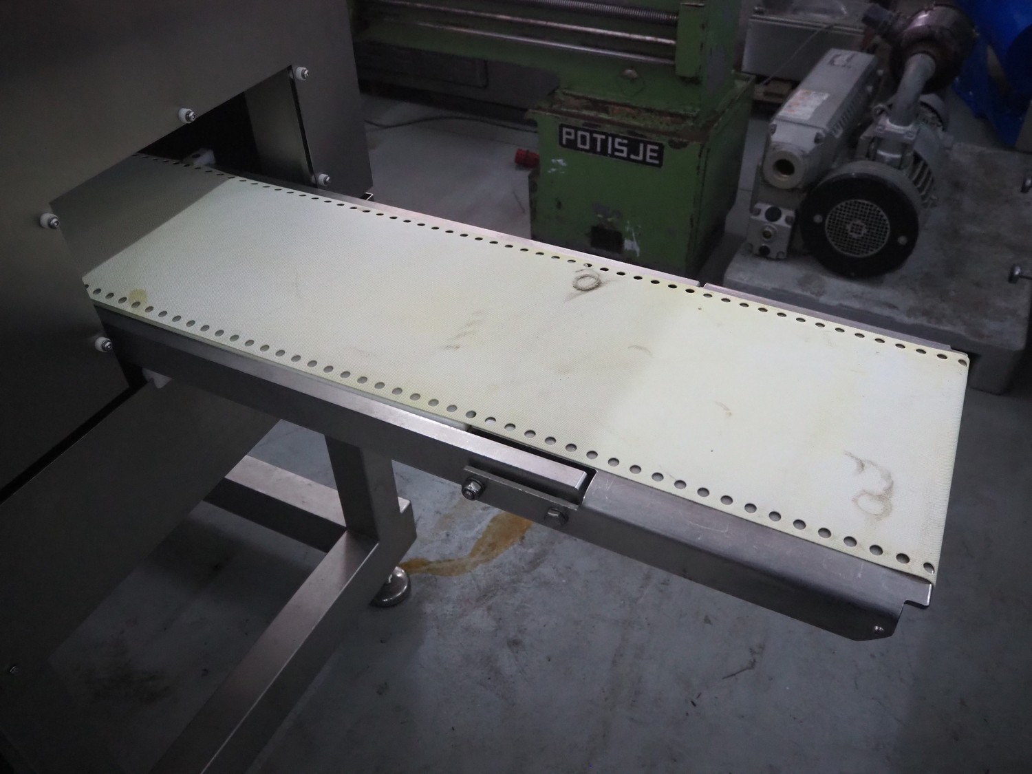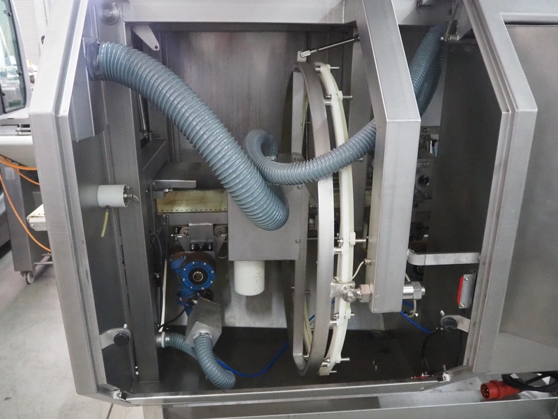 Marel portion cutter, type: I-CUT 36, serial number: E011407, year of construction: 2010, 400 V, 3 Ph, 50/60 Hz, 18 A, 8 kW, plastic belt, belt width: 300 mm, total dimensions: 3100 mm x 1300 mm x 1830 mm.