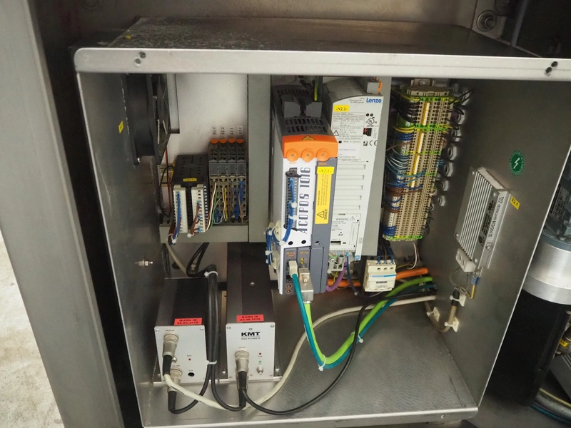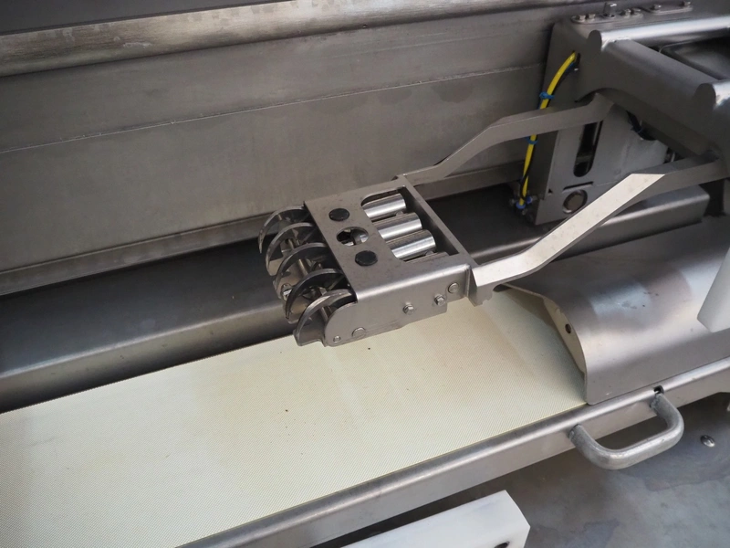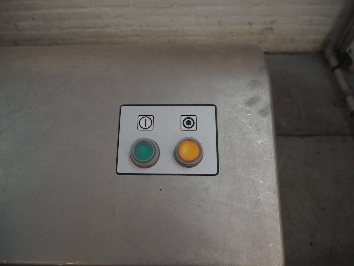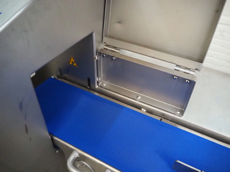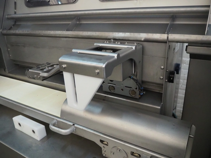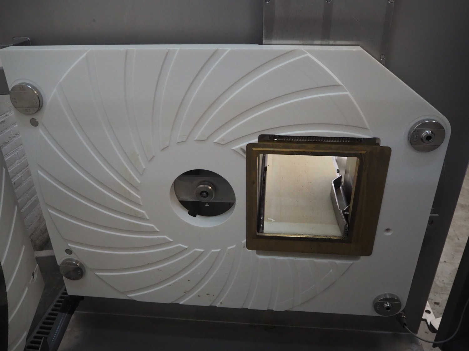 Treif Machinenbau GmbH portion slicer, model: FALCON conti, machine number: 461004.61938.106098, year of construction: 2009, 380-480 V, 3 Ph, 50/60 Hz, 22-18 A, 8.6 kW, weight: 750 kg, plastic belt, belt width: 222 mm, total dimensions: 2850 mm x 1300 mm x 1850 mm, 1650 mm x 830 mm x 1450 mm.